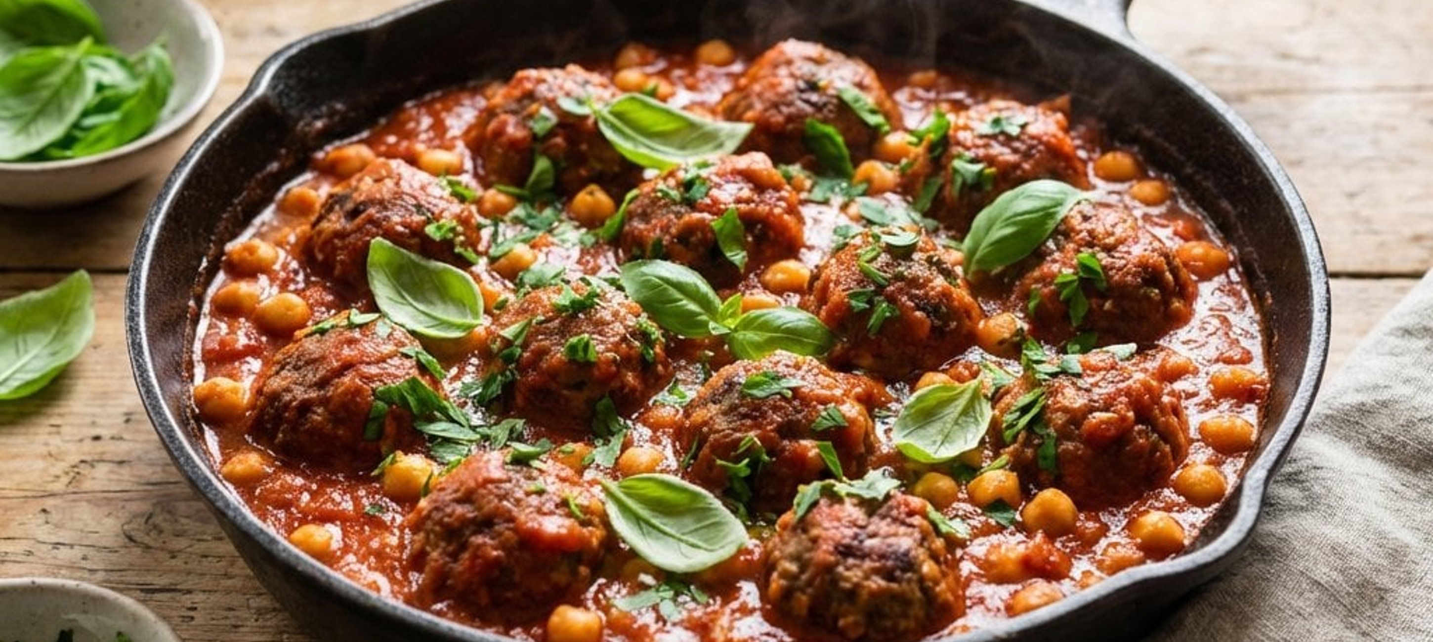 - 4Die Fleischbällchen zurück in den Topf geben und alles zusammen weitere 15–20 Minuten sanft köcheln lassen, bis die Bällchen vollständig durchgegart sind. Mit Reis oder Spaghetti servieren.