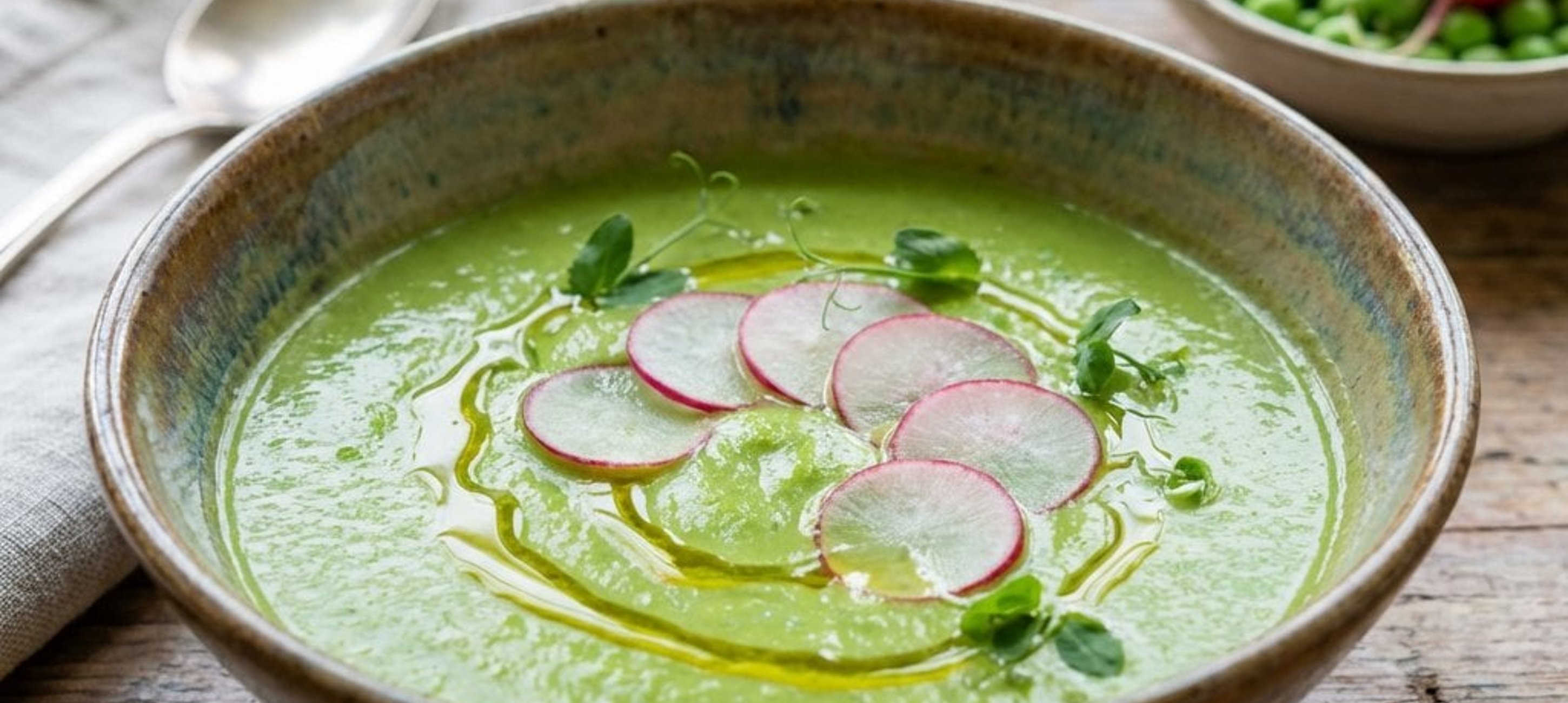 - 2Sobald die Kartoffeln weich sind, die TK-Erbsen hinzufügen. Nur kurz (maximal 2 Minuten) mitköcheln lassen, damit die Suppe ihre leuchtend grüne Farbe behält.