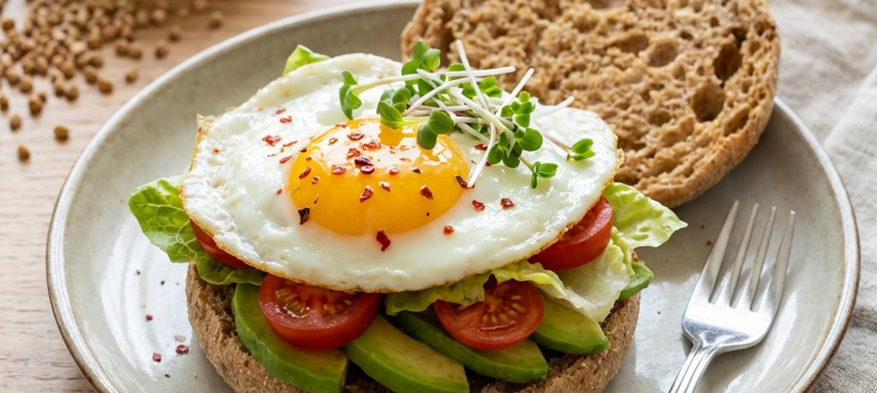 - 2Den Muffin aufschneiden und die Schnittflächen kurz trocken oder mit etwas Butter anrösten. Mit Salat, Tomaten und Avocado belegen. Die Avocado mit dem restlichen Salz und Pfeffer würzen und mit etwas Limettensaft beträufeln. Das Ei daraufsetzen, mit Radieschensprossen garnieren und das perfekte Frühstück genießen.