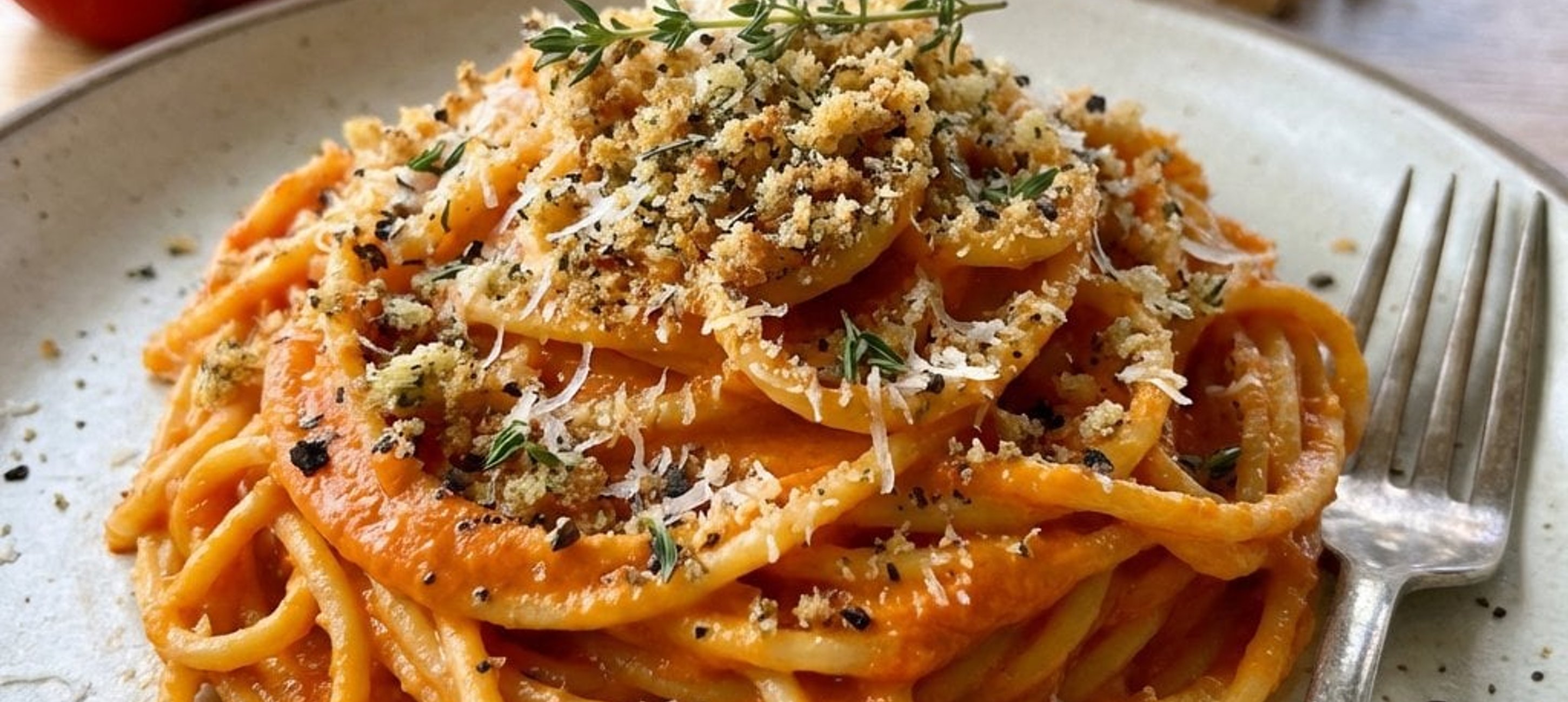 - 2Die Pasta auf Tellern anrichten, großzügig mit den Kräuter-Bröseln bestreuen und mit frischen Kräutern sowie frisch gemahlenem schwarzen Pfeffer garniert servieren. Guten Appetit!