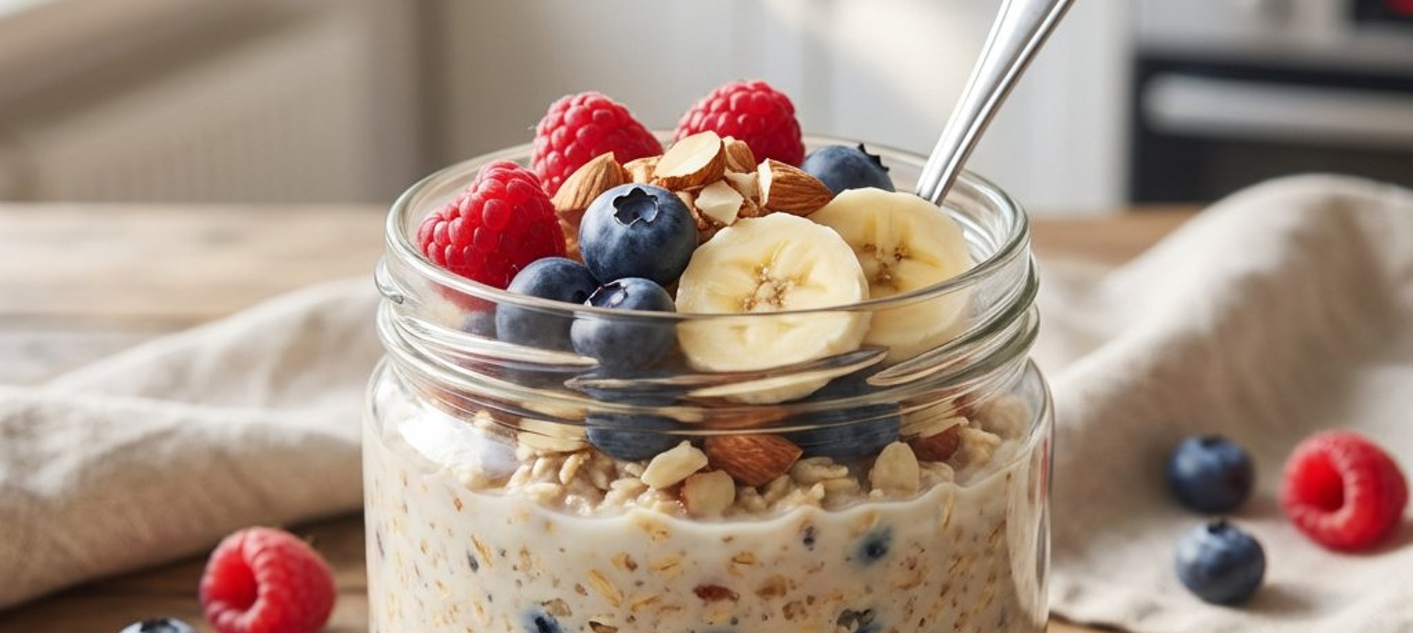 - 1Haferflocken, Haferdrink, pflanzliches Joghurt, eine Prise Salz und Zimt in einem Glas oder einer Schüssel gut vermischen.