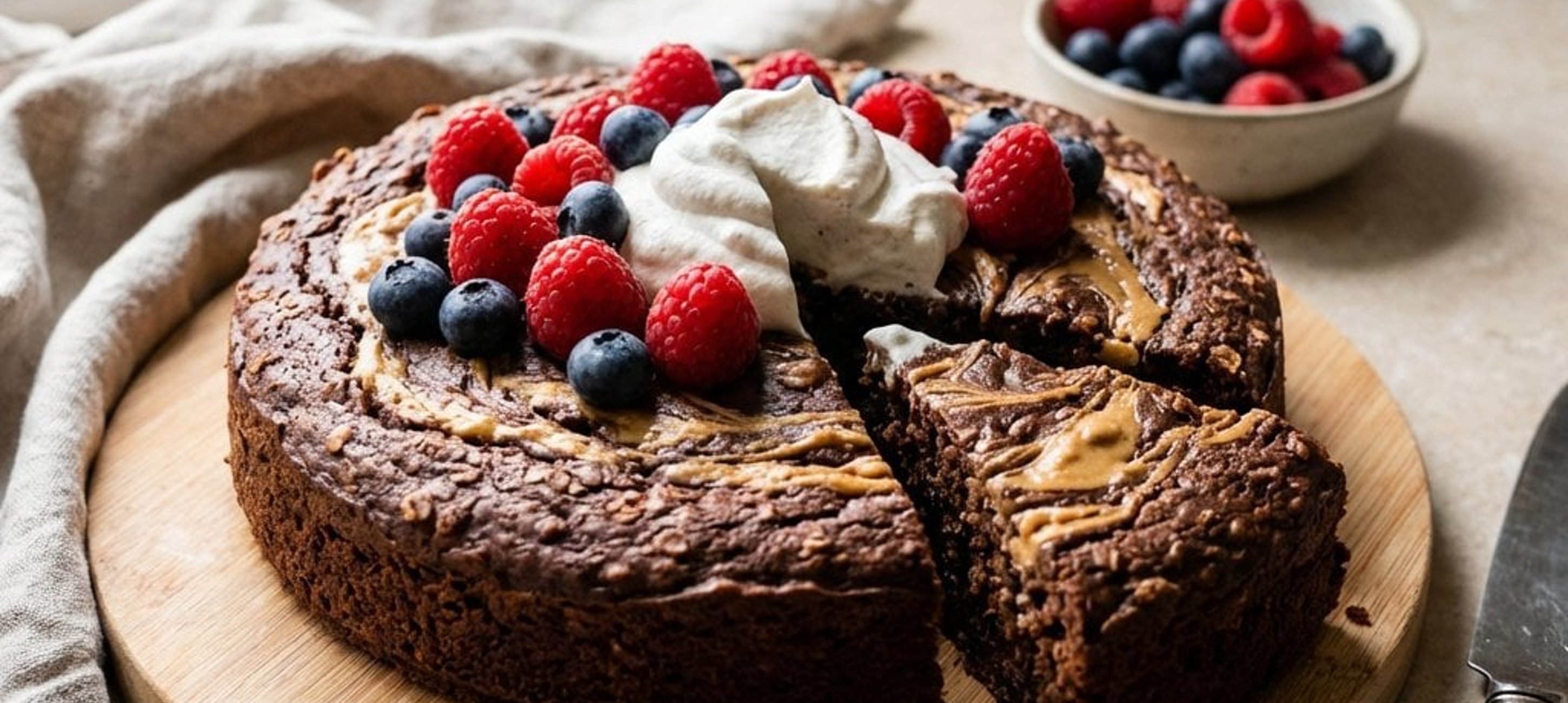 - 4Lass den Kuchen vollständig auskühlen, bevor du ihn anschneidest. Serviere ihn bei Zimmertemperatur, idealerweise mit frischen Beeren und einem Klecks pflanzlichem Schlagobers.