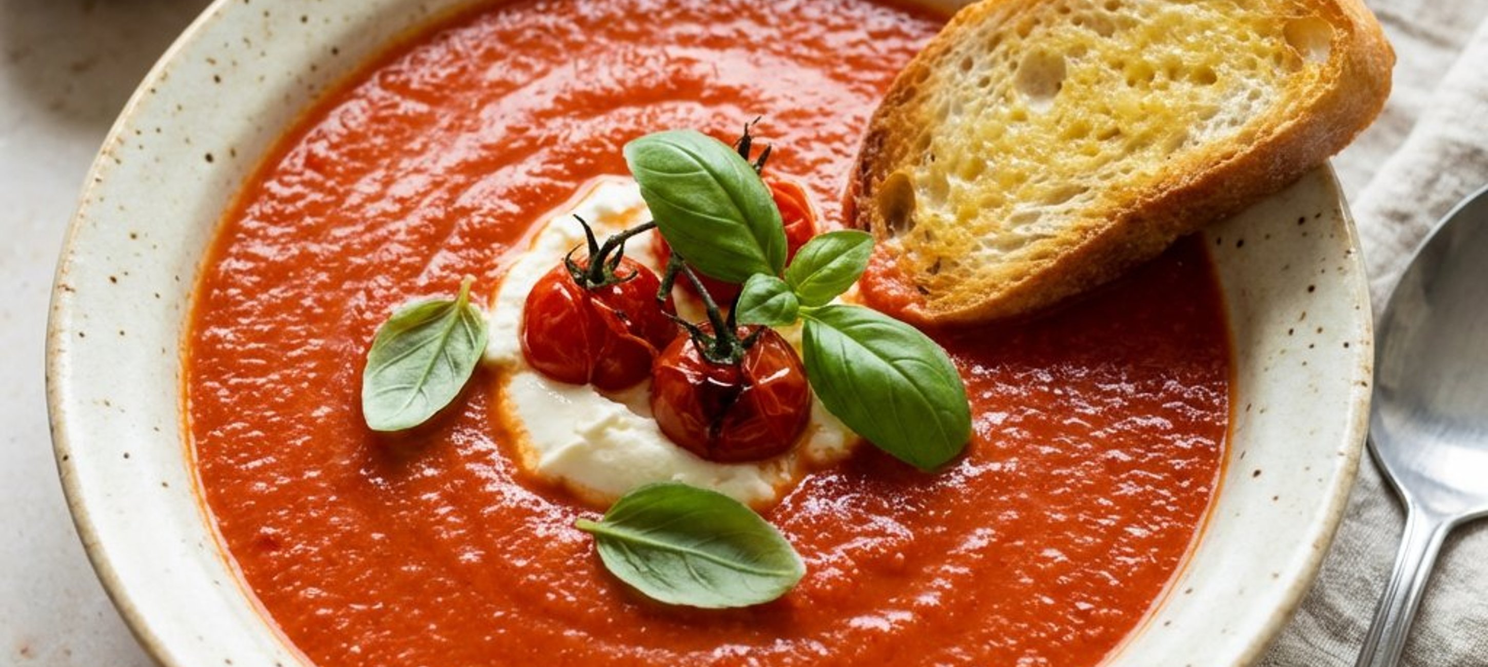 Für ein besonders intensives Aroma können Sie die Paradeiser vor dem Mixen im Ofen rösten. Servieren Sie die Suppe mit einem extra Schuss Olivenöl.