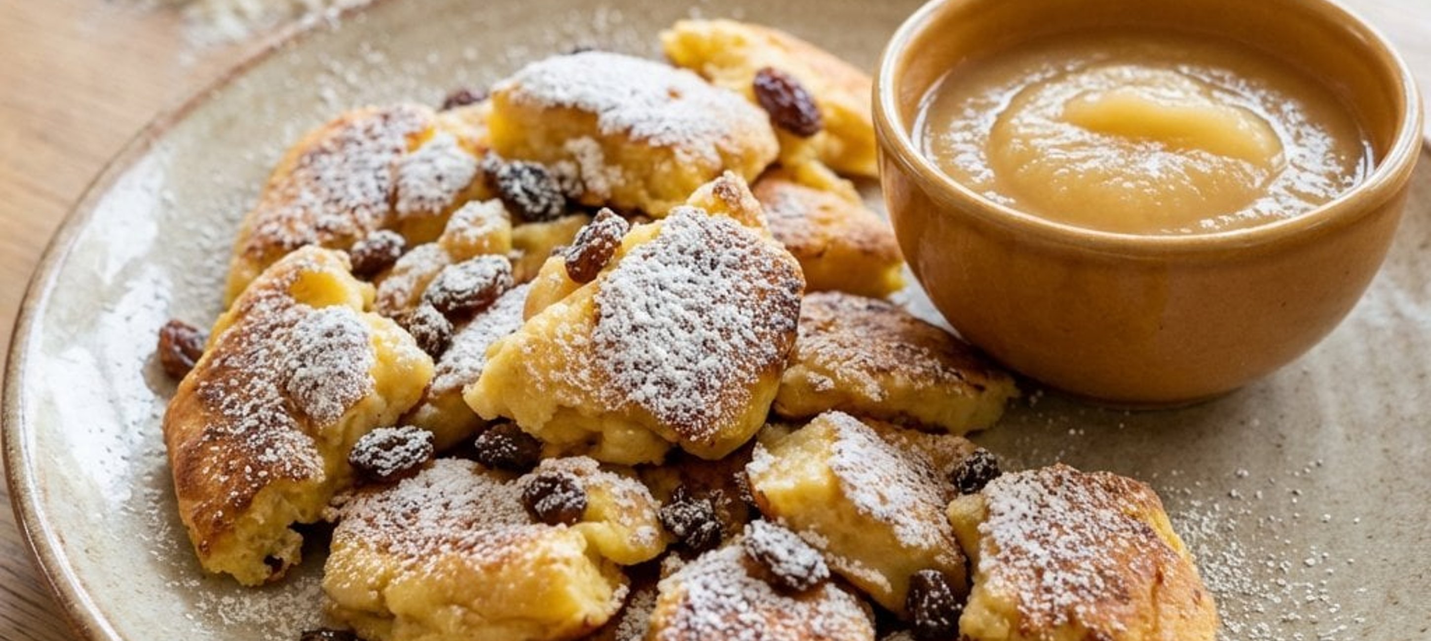 Servieren Sie den Kaiserschmarrn traditionell mit Zwetschkenröster oder Apfelmus für das perfekte Geschmackserlebnis.