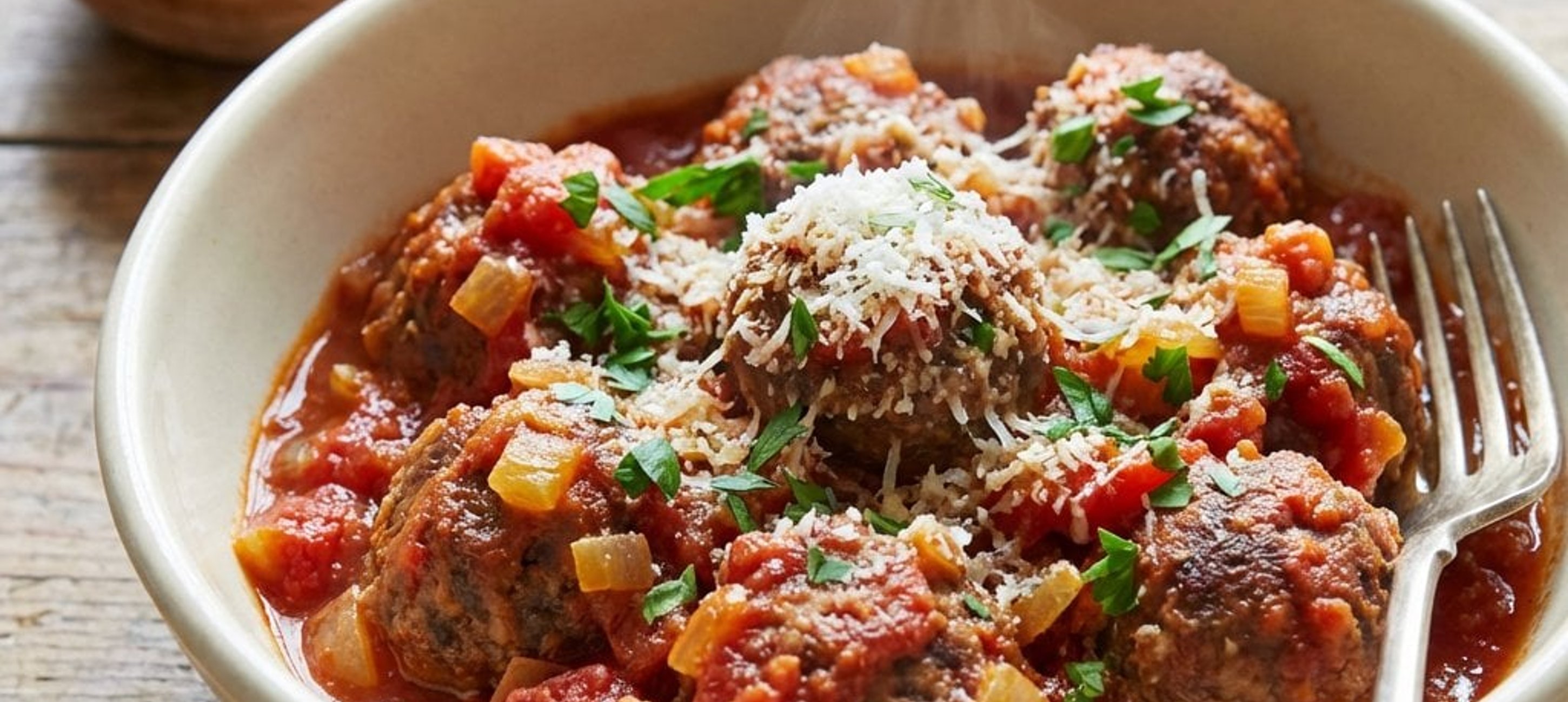Serviere die Fleischbällchen klassisch mit Spaghetti oder lockerem Reis. Ein paar frische Basilikumblätter als Garnitur runden das Gericht perfekt ab.