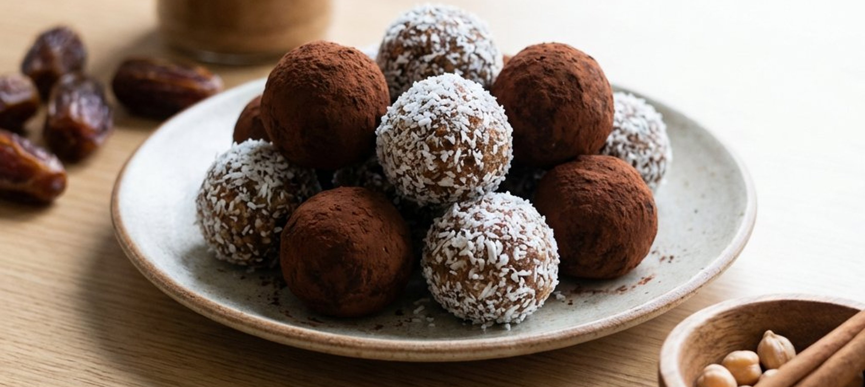 Verwende für ein besonders feines Aroma weißes Mandelmus. Die Bällchen sind ideal für Meal-Prep geeignet!