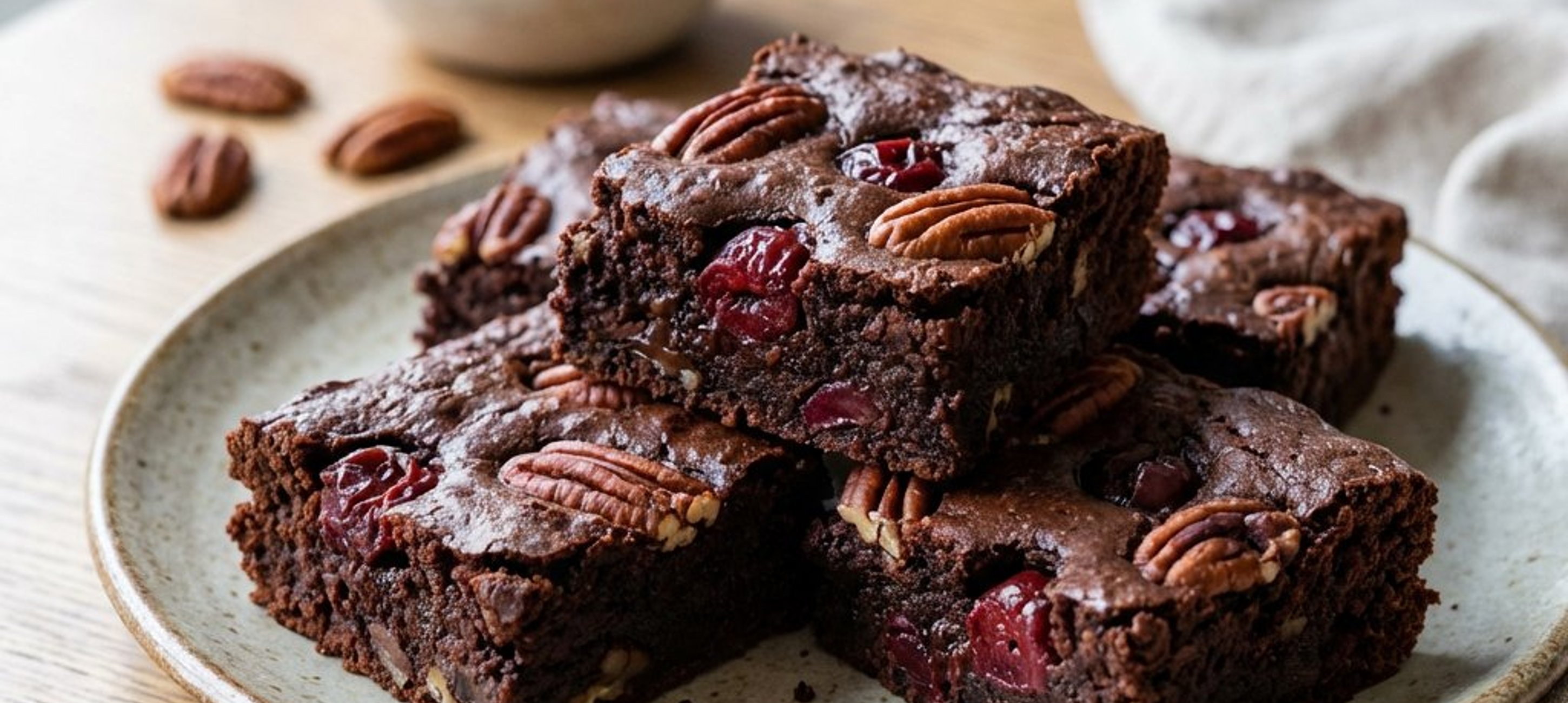 - 4Nach dem Abkühlen in gleichmäßige Würfel schneiden, nach Belieben mit restlichen Pekannüssen garnieren und servieren.