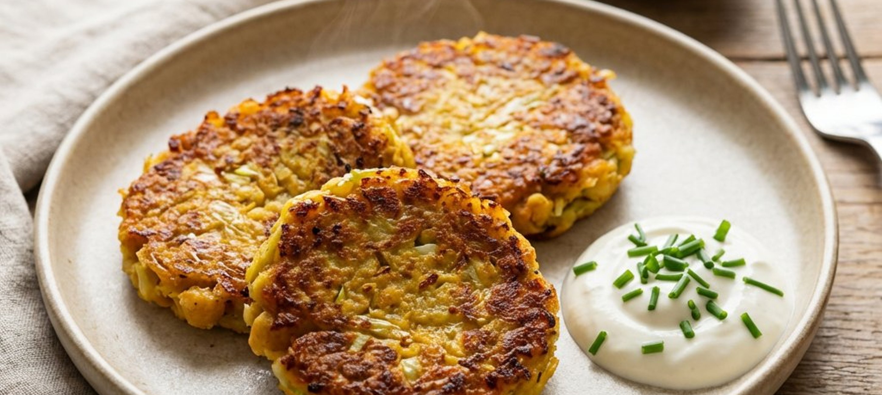 - 4Die fertigen vegetarischen Gemüseschnitzel auf Tellern anrichten und sofort servieren. Besonders gut schmecken sie mit einem Klecks Sauerrahm und frischem Schnittlauch.