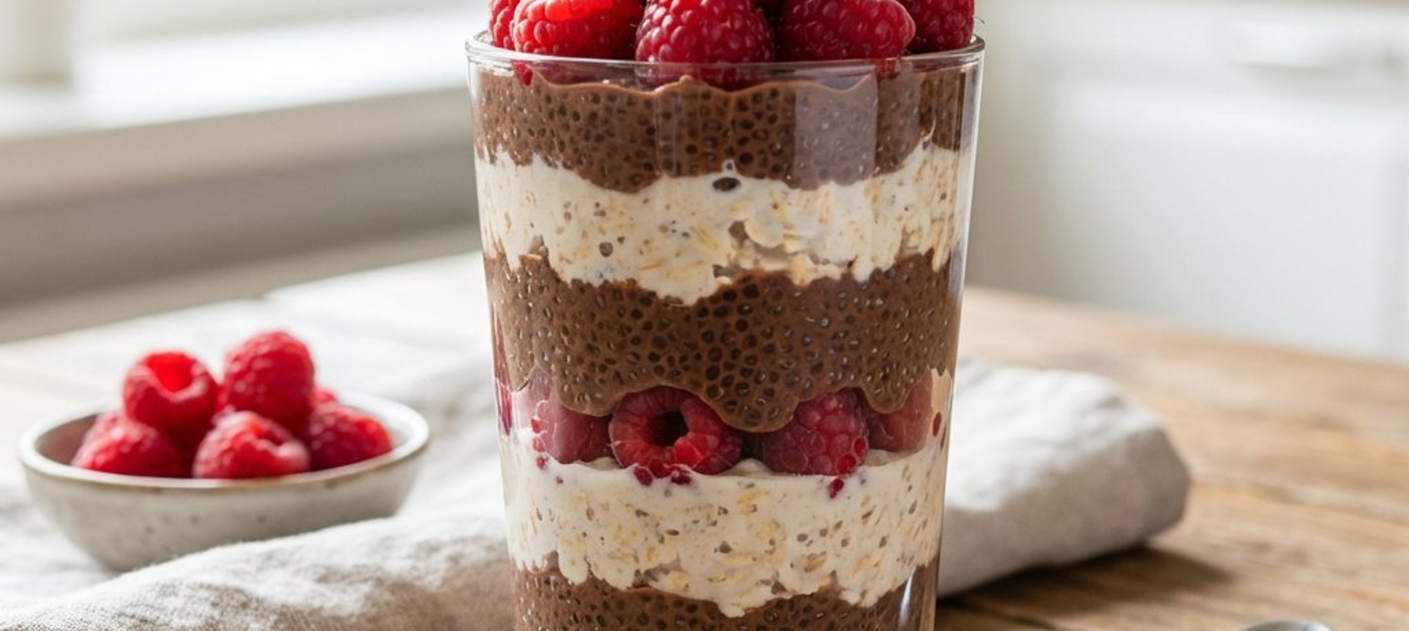 - 3Stellen Sie das Glas über Nacht (für mindestens 8 Stunden) in den Kühlschrank, damit die Haferflocken und Chia-Samen quellen können und die perfekte Konsistenz erreichen.