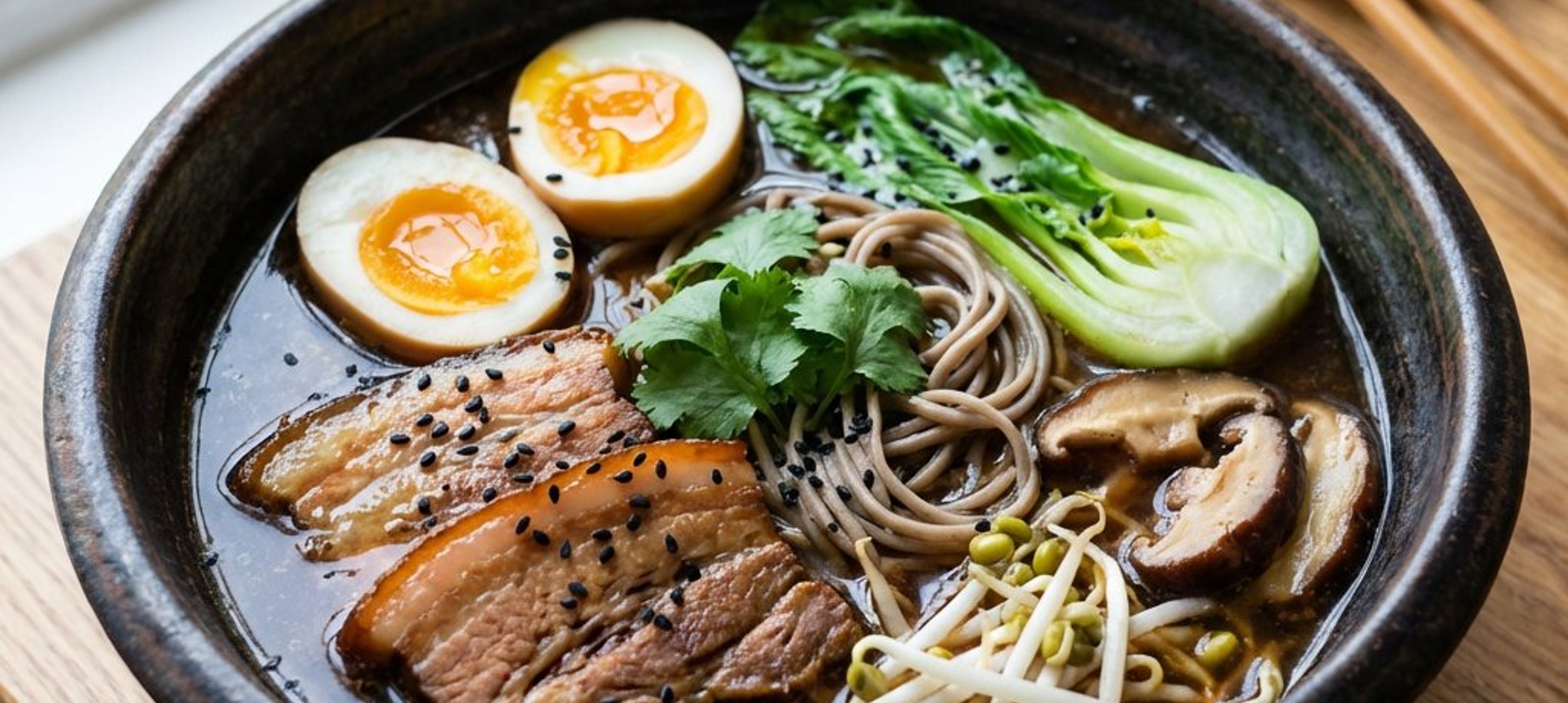 Servieren Sie den Ramen in vorgewärmten Schalen, damit die Brühe länger heiß bleibt. Für eine extra Portion Umami können Sie die Eier bereits am Vortag in einer Mischung aus Sojasauce und Mirin marinieren.