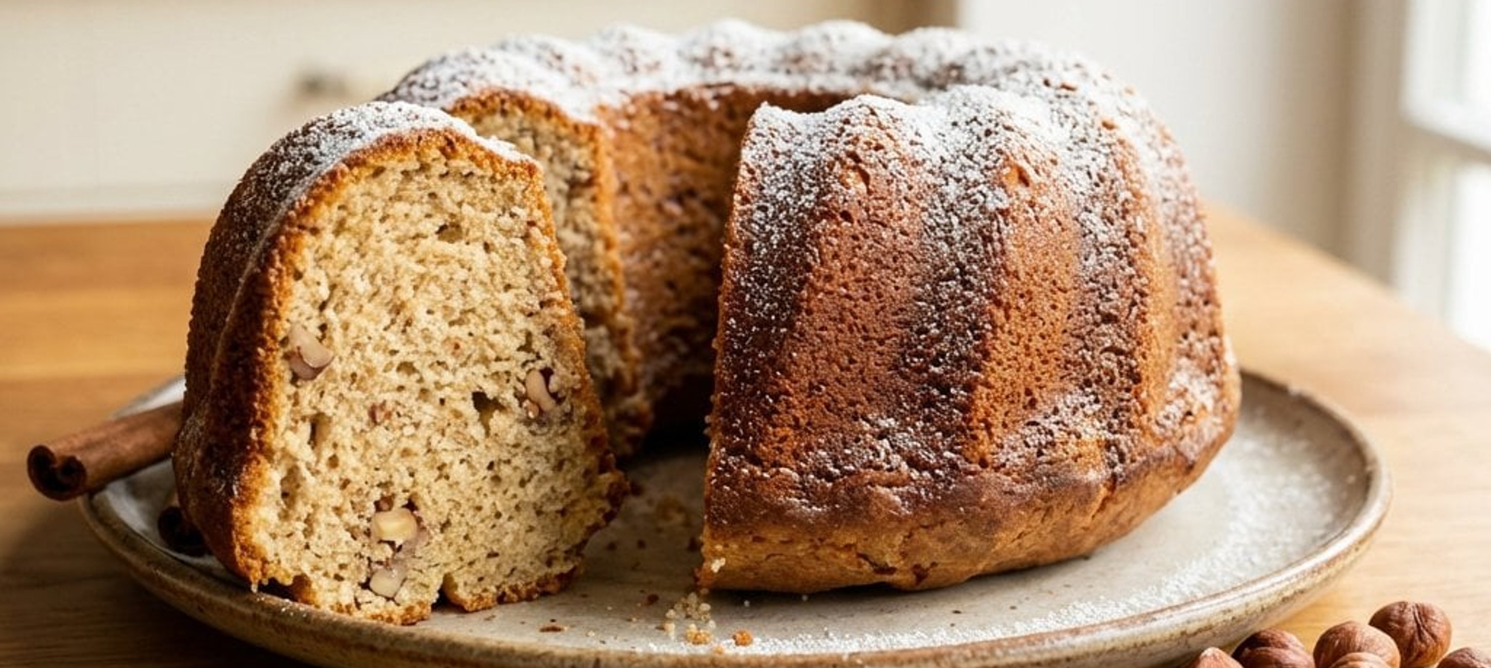 - 7Sobald der Kuchen abgekühlt ist, einen Teller auf die Form legen und vorsichtig stürzen.