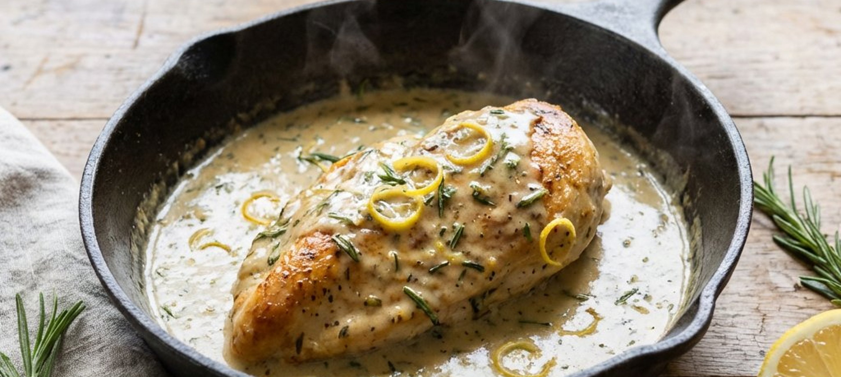 - 2Die Hendlbrüste aus dem Ofen nehmen, auf Tellern anrichten und mit der cremigen Rosmarinsauce aus der Pfanne übergießen. Heiß servieren.