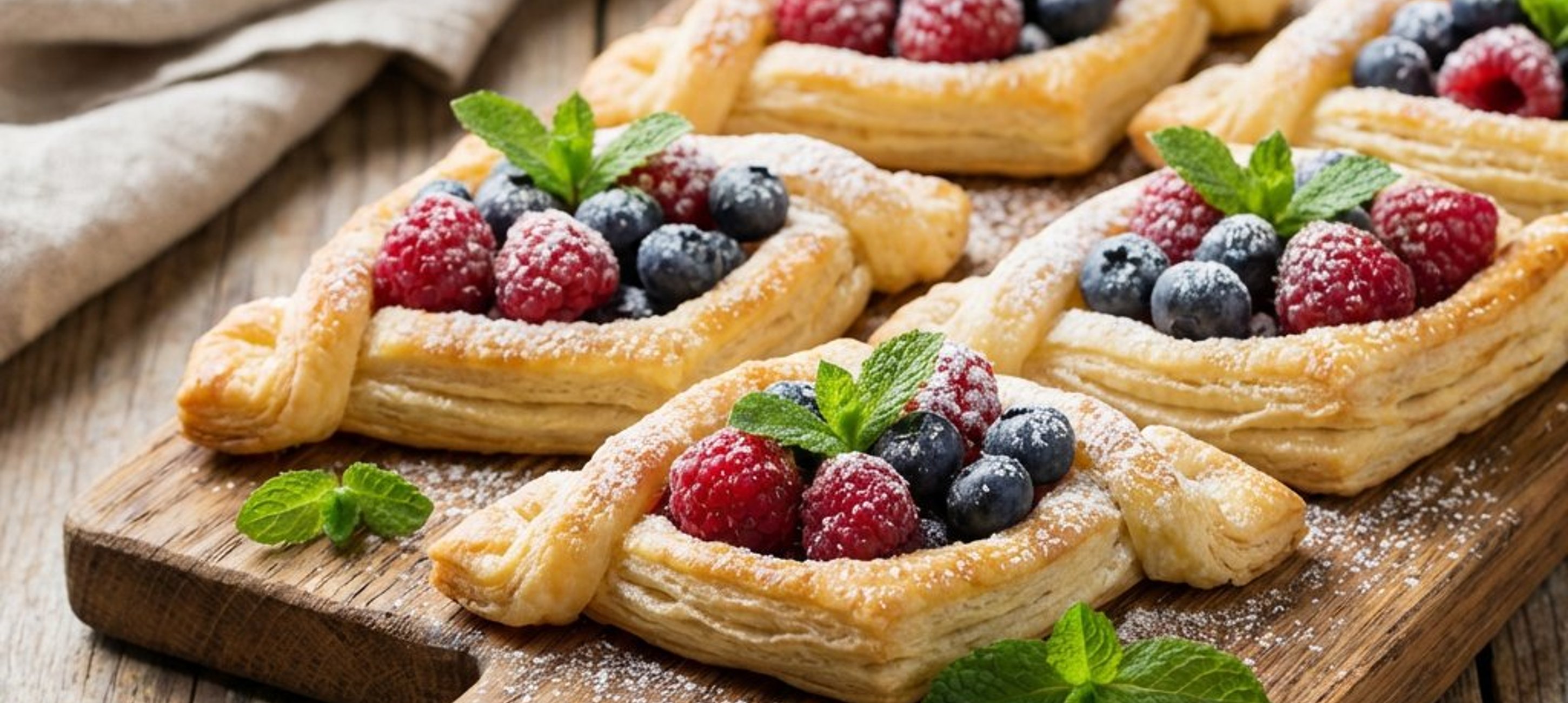 - 4Jedes Teigrechteck vorsichtig über die Beeren legen und die Ränder leicht andrücken, sodass die Früchte gut umschlossen sind.