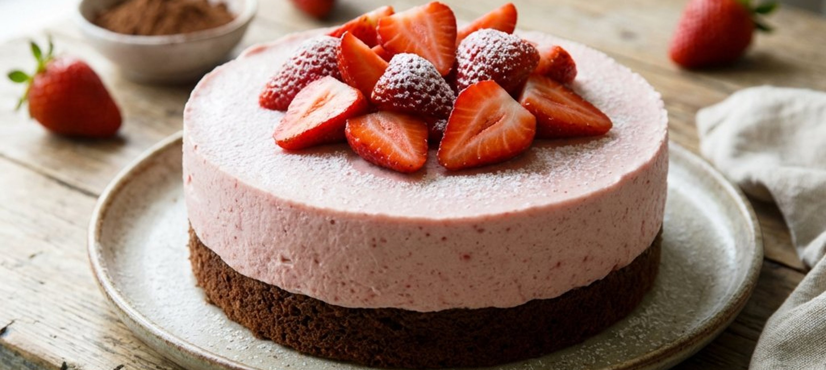 Ein kleiner Tipp: Wenn Sie die Torte noch fruchtiger mögen, können Sie ein paar Erdbeerstücke direkt in die Mousse mischen, bevor Sie sie auf den Boden streichen. Servieren Sie die Torte gut gekühlt!