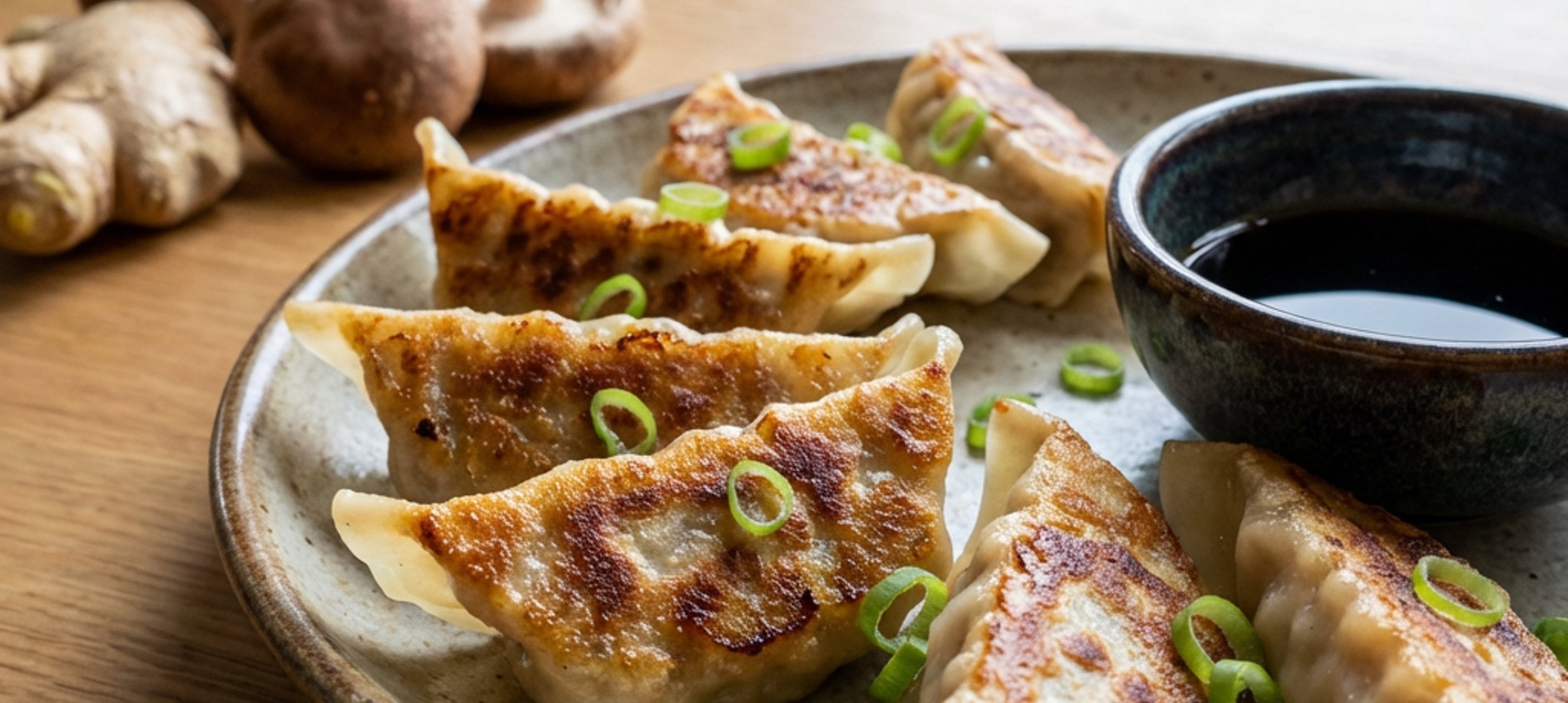 - 5Braten: Eine beschichtete Pfanne mit Rapsöl erhitzen. Die Teigtaschen von einer Seite scharf goldbraun anbraten (3–4 Minuten). 80 ml Wasser hinzufügen, mit einem Deckel abdecken und 4 Minuten dämpfen lassen.