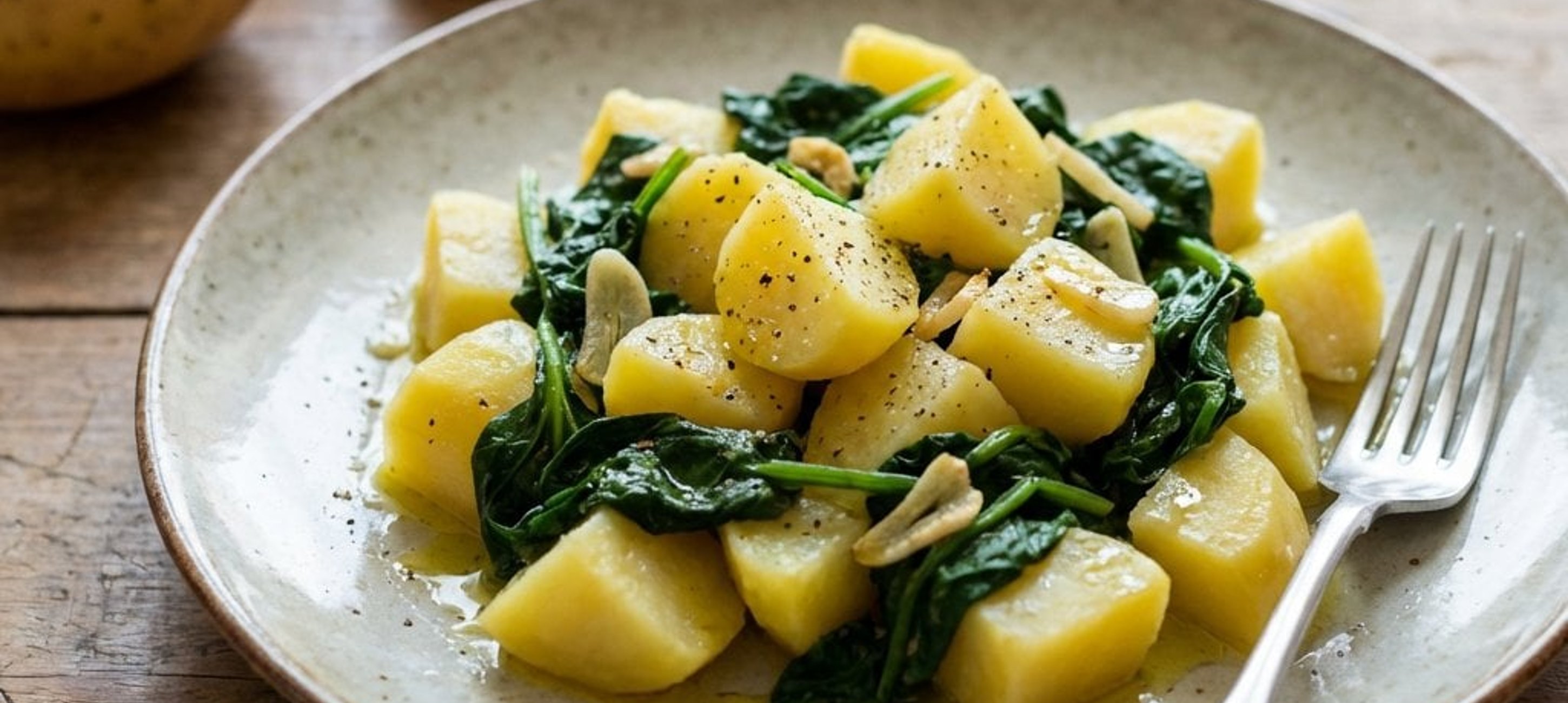 - 4Den gewaschenen Blattspinat hinzufügen. Mit Salz und frisch gemahlenem Pfeffer würzen. Alles bei milder Hitze ca. 5 Minuten unter Rühren dünsten, bis der Spinat zusammengefallen ist. Sofort servieren.