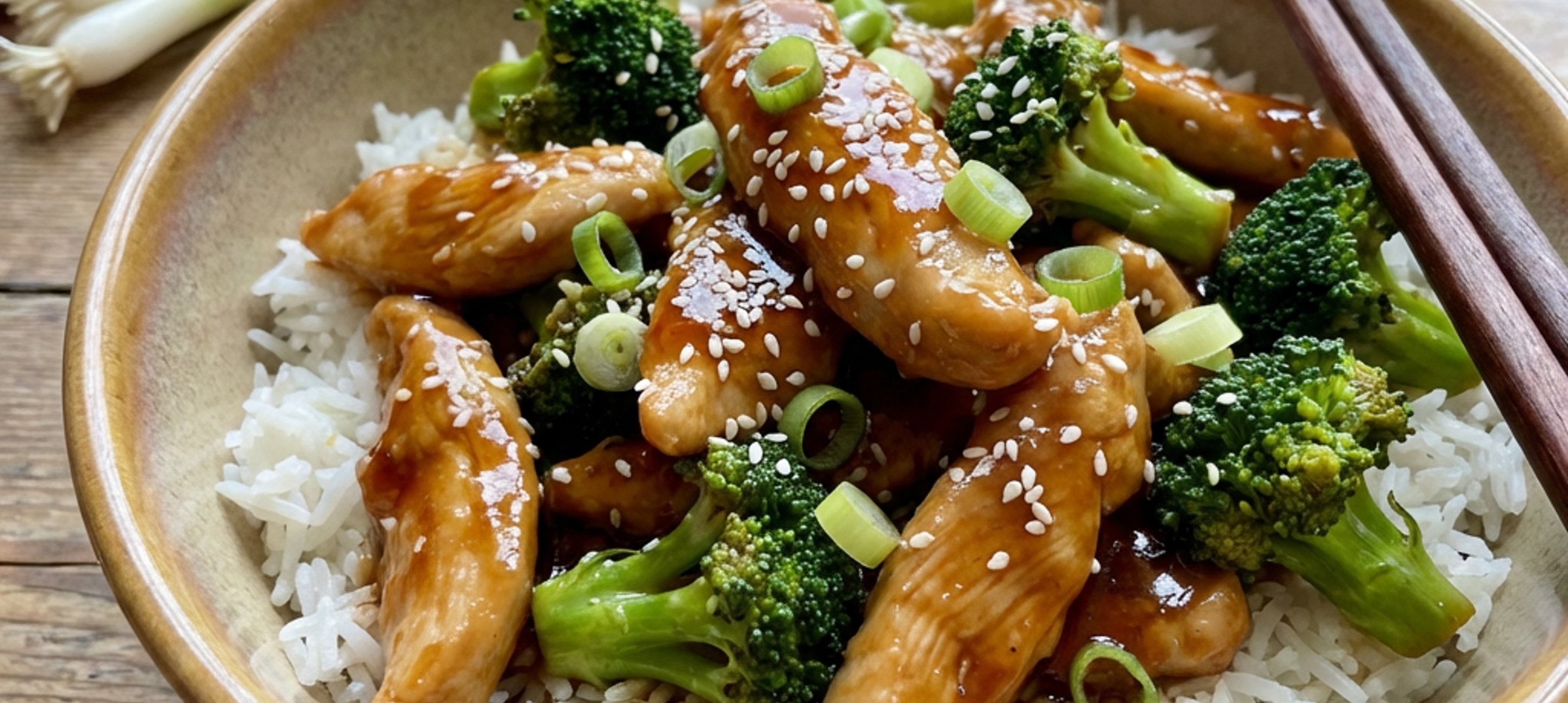 - 5Das Teriyaki Hähnchen auf Reis anrichten und mit Sesam garnieren. Guten Appetit!