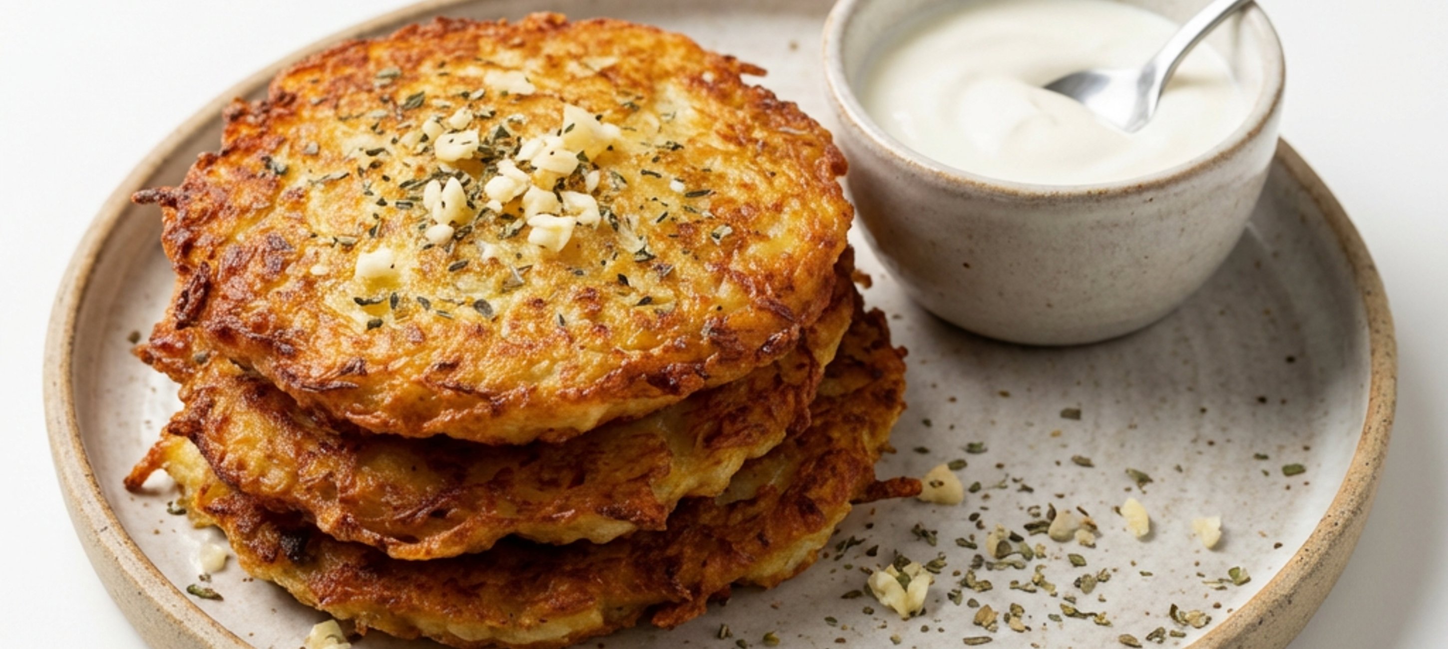 - 4Öl in einer Pfanne erhitzen. Mit einem Löffel kleine Puffer formen und von beiden Seiten goldbraun braten.