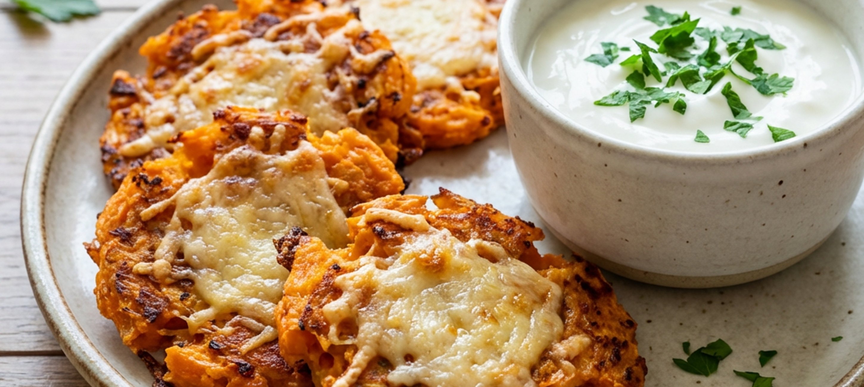 - 4Jedes flach gedrückte Stück großzügig mit Käse bestreuen und im vorgeheizten Backrohr ca. 20 Minuten backen, bis die Karotten perfekt knusprig sind.