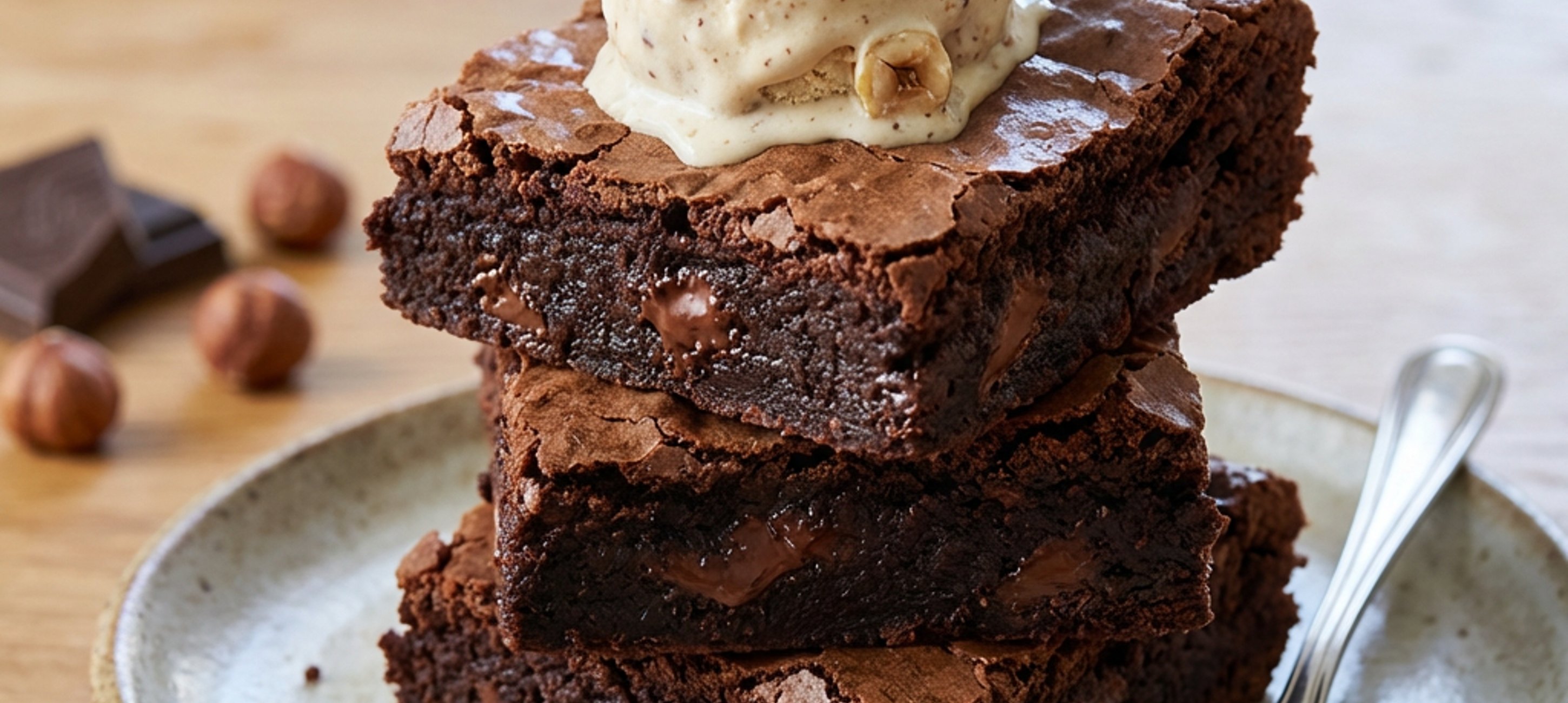 - 6Nimm deine Brownies am besten knapp 2 Minuten früher aus dem Backrohr. Denn dann sind sie noch saftiger. Und für den extra Schoko-Kick kannst du außerdem noch 100 g Zartbitterschokolade im Wasserbad schmelzen und diese dann über deine fertig gebackenen Brownies gießen. Immer ein Hit: die noch ofenwarmen Brownies mit einer Kugel Nuss-Eis servieren!