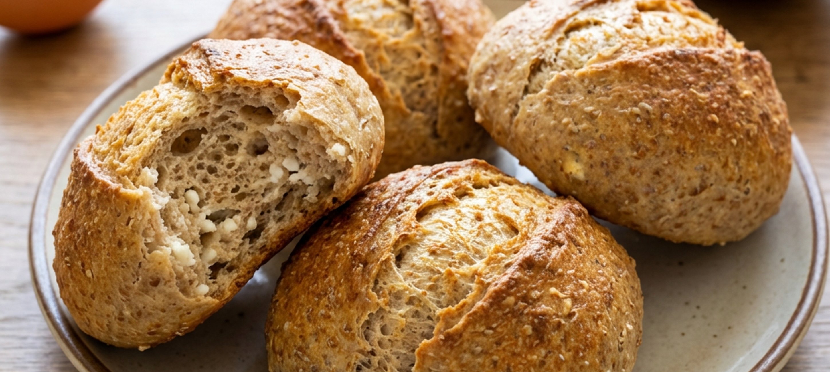 - 3Aus dem gerasteten Teig 4 gleich große Weckerl formen und diese auf das vorbereitete Backblech setzen. Das Blech in das vorgeheizte Rohr schieben und die Weckerl bei 165–170 °C für ca. 30–35 Minuten backen, bis sie oberflächlich goldbraun sind und auf Fingerdruck leicht nachgeben.