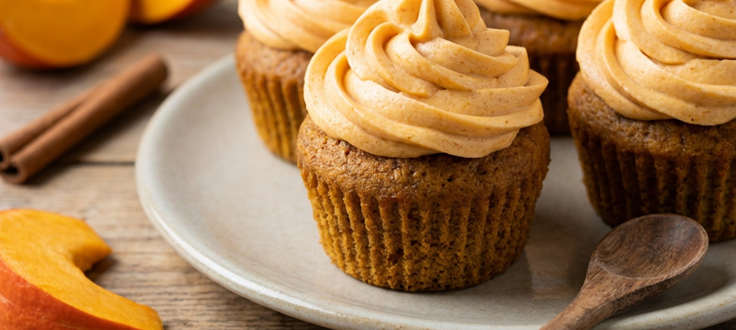 - 4Für das Frosting die Butter mit dem Handrührgerät schaumig schlagen. Puderzucker, restliches Kürbispürree und 1/4 TL Zimt zugeben und zu einem cremigen Frosting verarbeiten.
