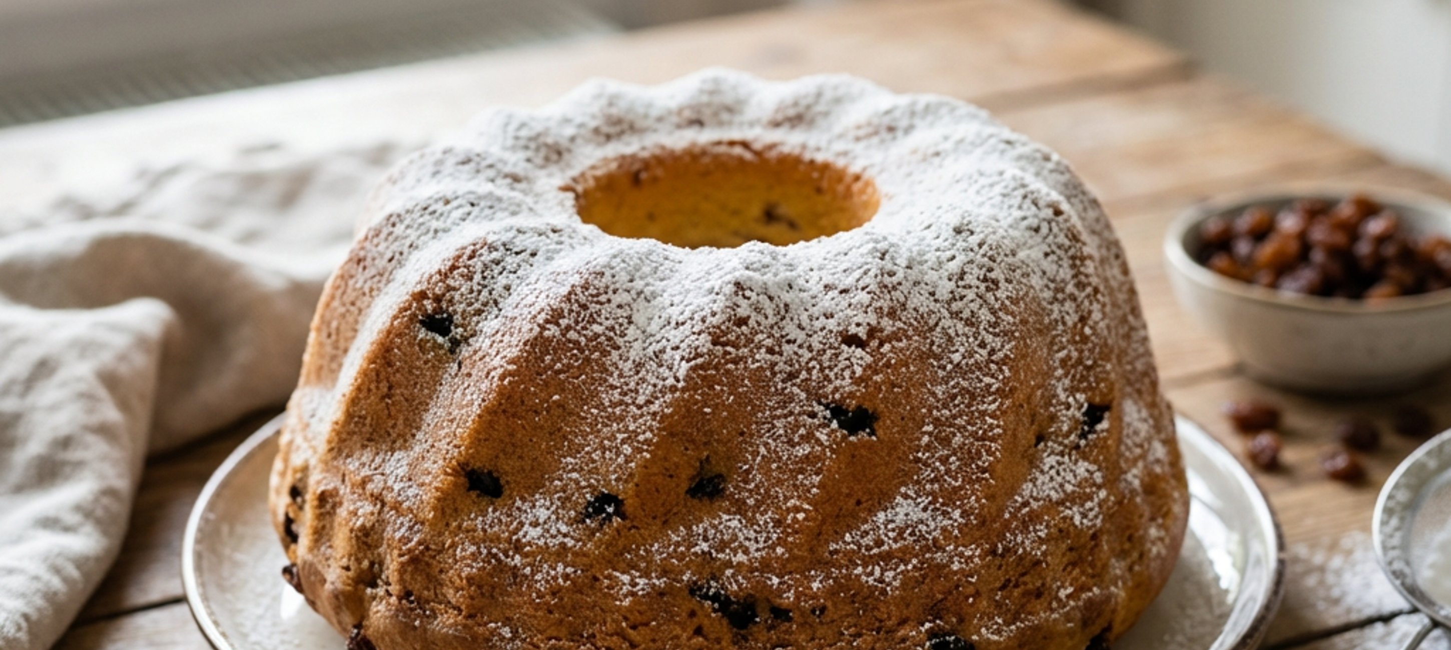 - 5Den ausgekühlten Topfen-Gugelhupf nach Belieben mit etwas Staubzucker bestreuen, in Portionen schneiden und servieren.