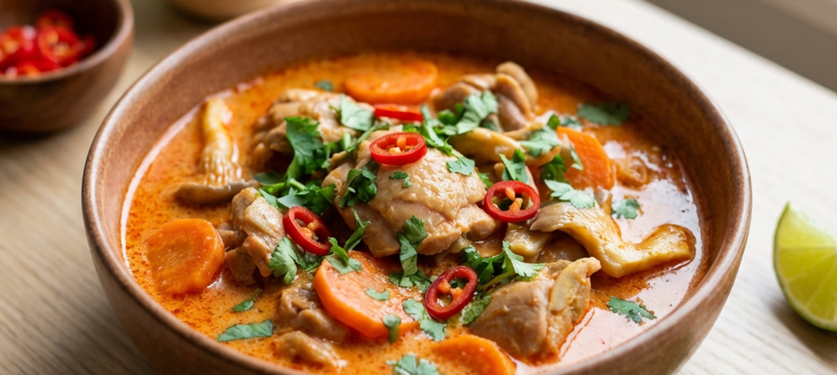 - 5Die Kokosnussmilch aufgießen, zum Kochen bringen und bei geringer Hitze ca. 4 Minuten köcheln lassen. Vom Herd nehmen, den Limettensaft und den frisch gehackten Koriander unterrühren. Nach Bedarf mit Salz abschmecken.