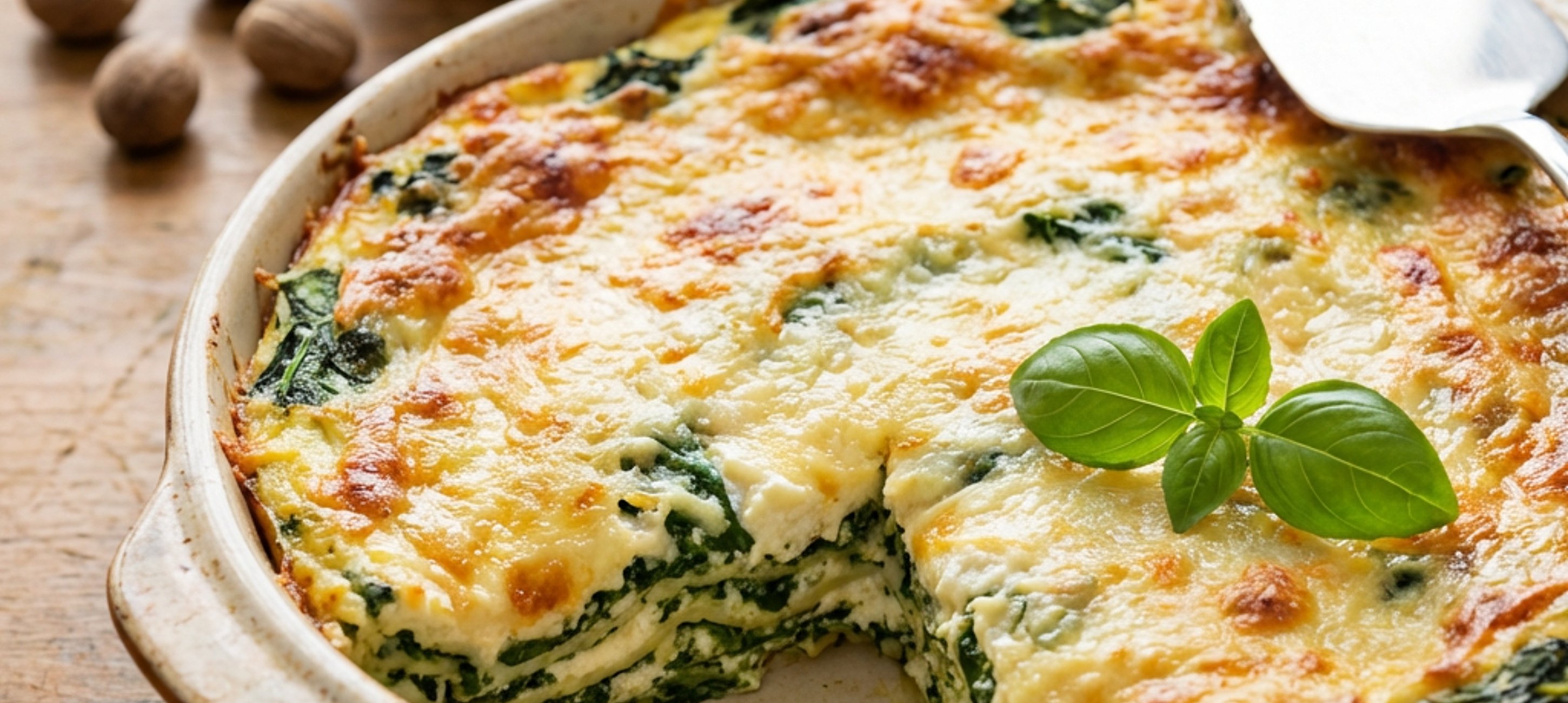 - 10Einen Teil der Spinat-Ricotta-Mischung auf die Lasagneblätter streichen, mit Béchamel übergießen und mit der nächsten Schicht Lasagneblätter fortfahren.
