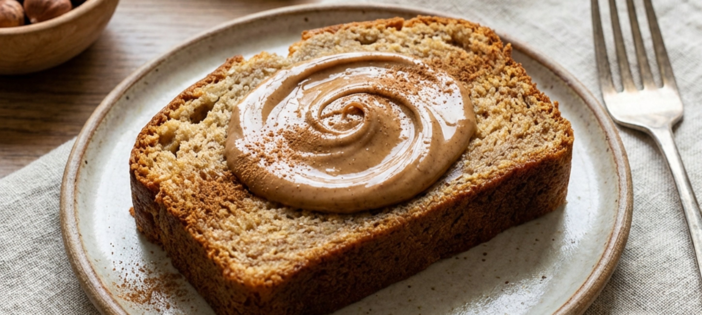 - 8Vor dem Servieren den Kuchen großzügig mit Nussmus bestreichen. Alternativ schmeckt das Bananenbrot auch mit Butter oder Schokoladencreme hervorragend.