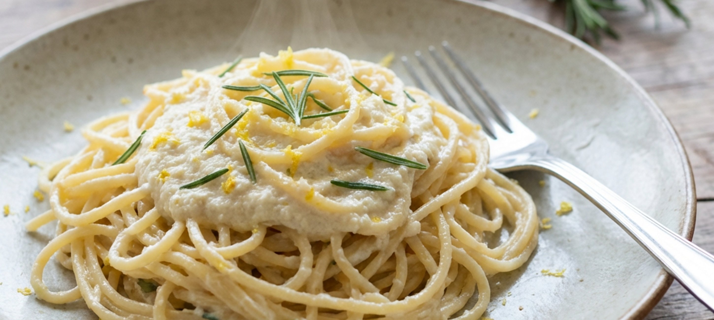 - 2Während die Pasta kocht, die Sauce zubereiten: In einer großen, tiefen Pfanne die Ricotta erhitzen, dann eine Kelle Nudelwasser, Zitronenschale, Rosmarin, eine Prise Salz und eine Prise Pfeffer hinzufügen. Alles gut vermengen und bei niedriger Hitze 6–8 Minuten köcheln lassen.