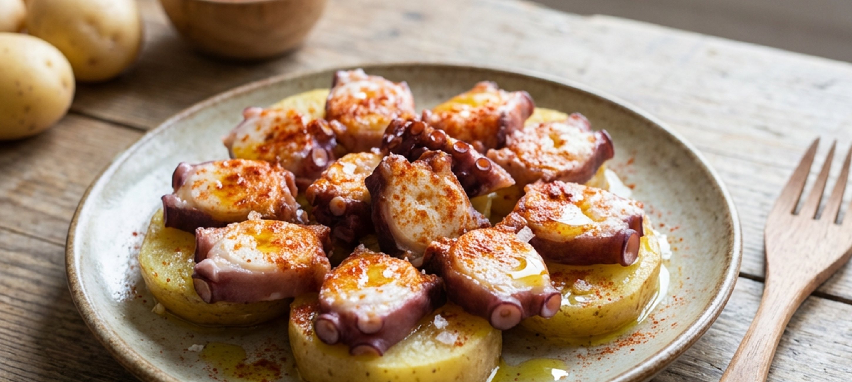 - 4Die Oktopusscheiben auf den Kartoffeln verteilen.