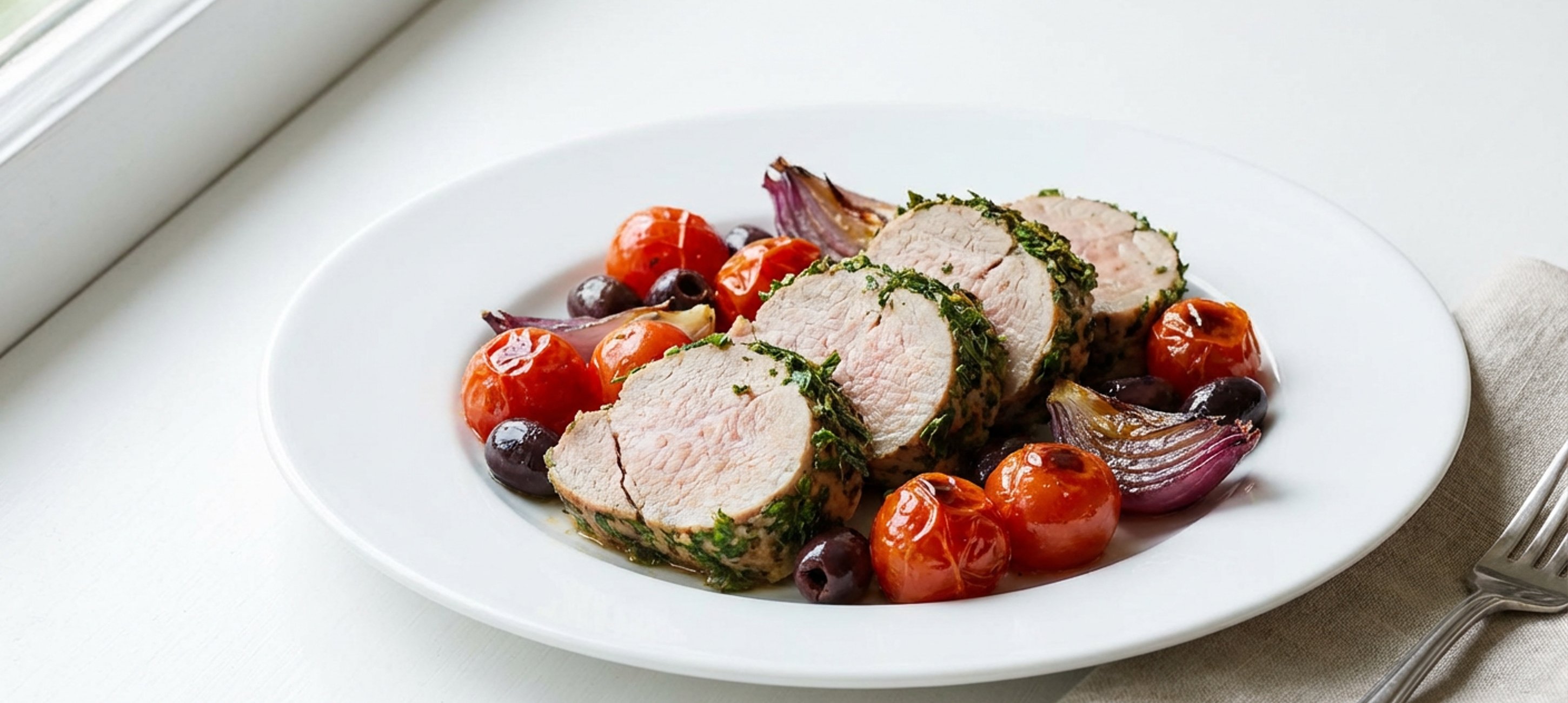 - 6Zum Anrichten die Medaillons auf dem mediterranen Gemüse servieren. Sie benötigen ein Fleischthermometer und einen Mixer.