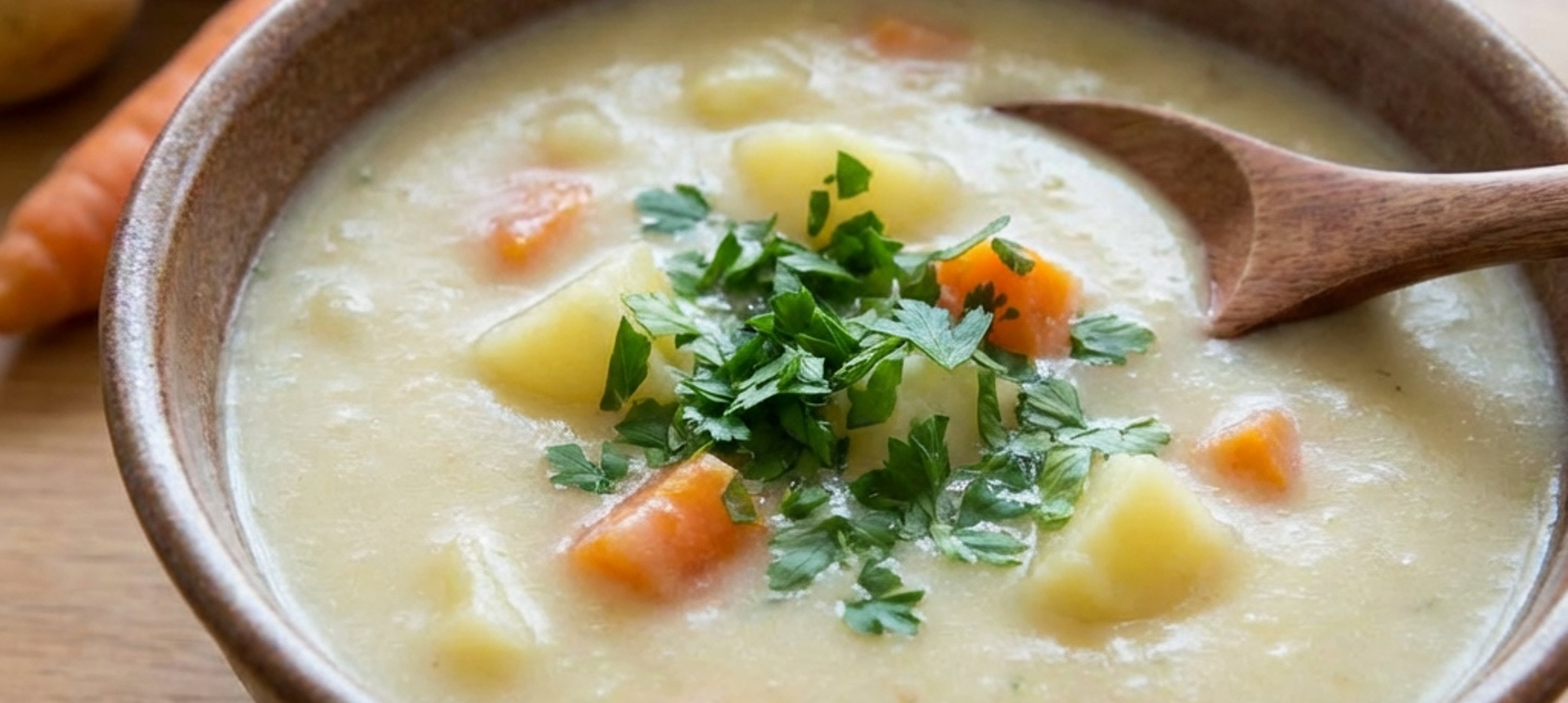 - 4Zwei Schöpflöffel voll Gemüse und Erdäpfel mit möglichst wenig Flüssigkeit aus dem Topf nehmen und beiseitestellen. Den restlichen Topfinhalt mit einem Stabmixer fein pürieren. Das beiseitegelegte Gemüse wieder in die Suppe geben, bei Bedarf nochmals mit Salz abschmecken und mit frisch gehackter Petersilie bestreut servieren.