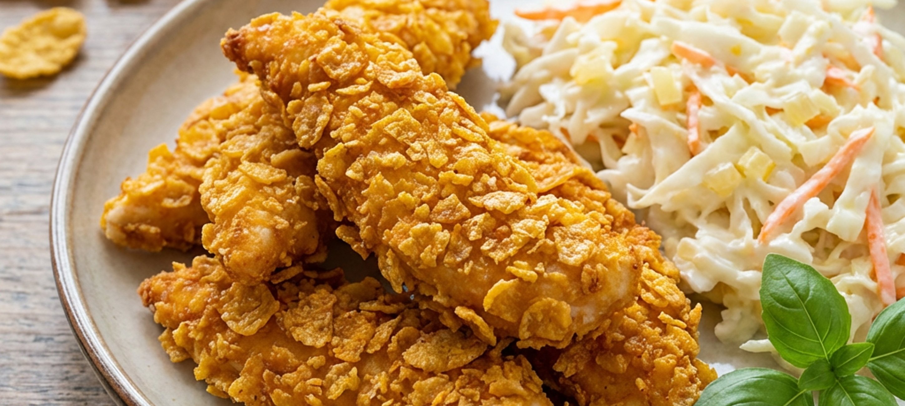 - 6Die fertigen Hendl-Strips auf 4 Tellern anrichten und mit dem vorbereiteten Coleslaw servieren.