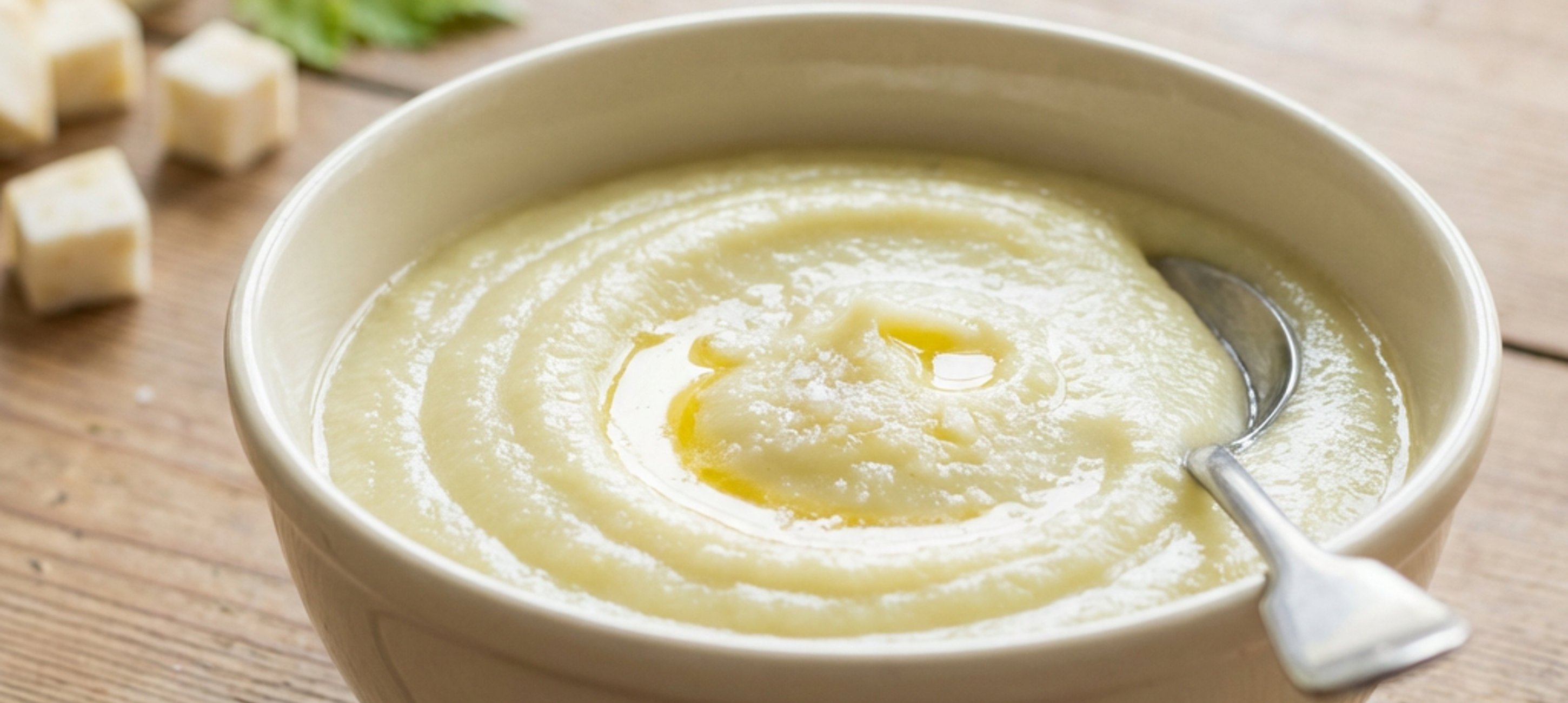 - 2Mit 150 ml Wasser aufgießen, zum Kochen bringen und die Hitze auf ein Drittel reduzieren. Etwa 15 Minuten köcheln lassen. Danach den Deckel aufsetzen und weitere 7 Minuten garen, bis der Sellerie weich ist. Das Schlagobers hinzufügen, gut verrühren und alles fein pürieren. Nach Belieben mit Salz abschmecken.