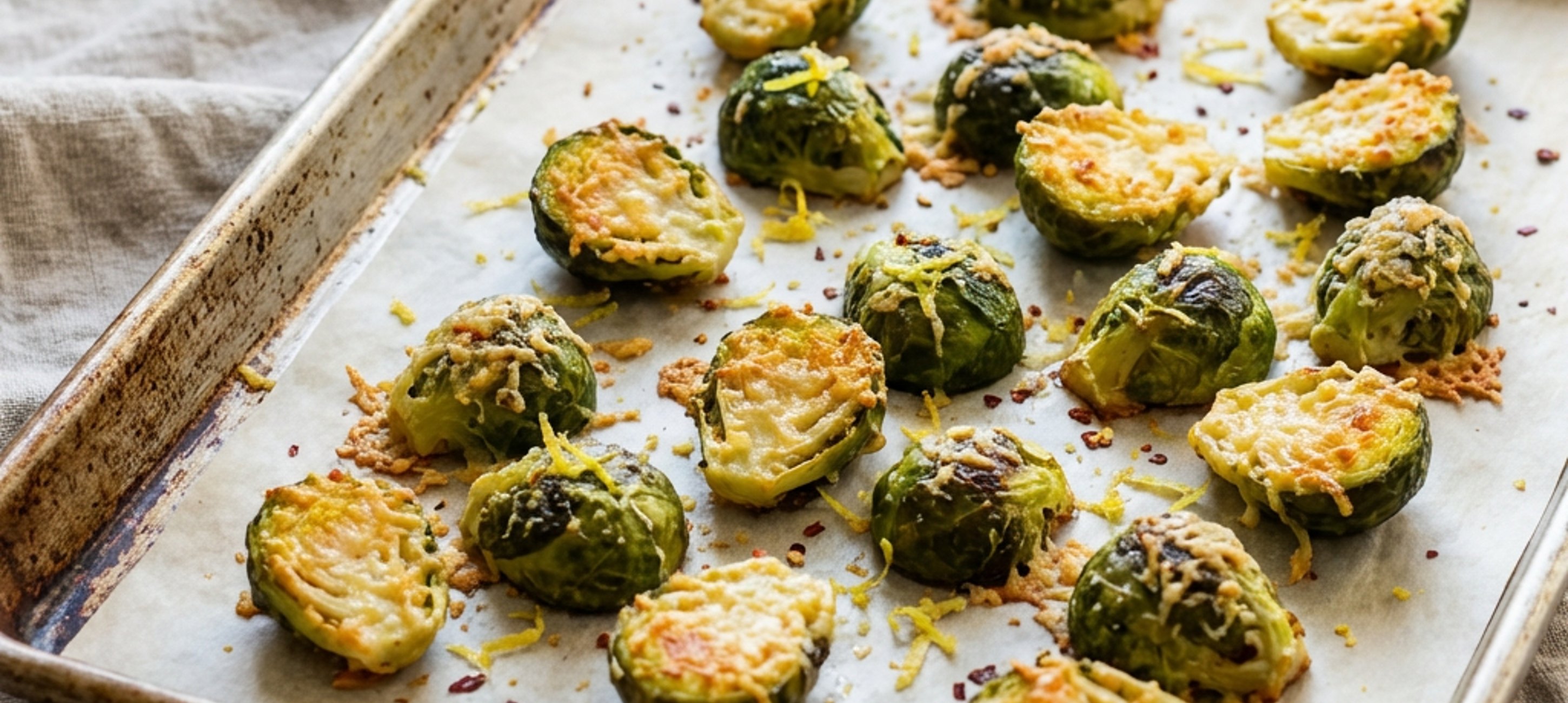 - 3Im vorgeheizten Ofen 16 bis 18 Minuten backen, bis die Kohlsprossen weich sind und die Käseschicht goldbraun und knusprig ist. Nach dem Herausnehmen 5 Minuten ruhen lassen, damit der Käse fest wird. Die Kohlsprossen vorsichtig voneinander trennen, mit frischer Zitronenschale bestreuen und heiß servieren.