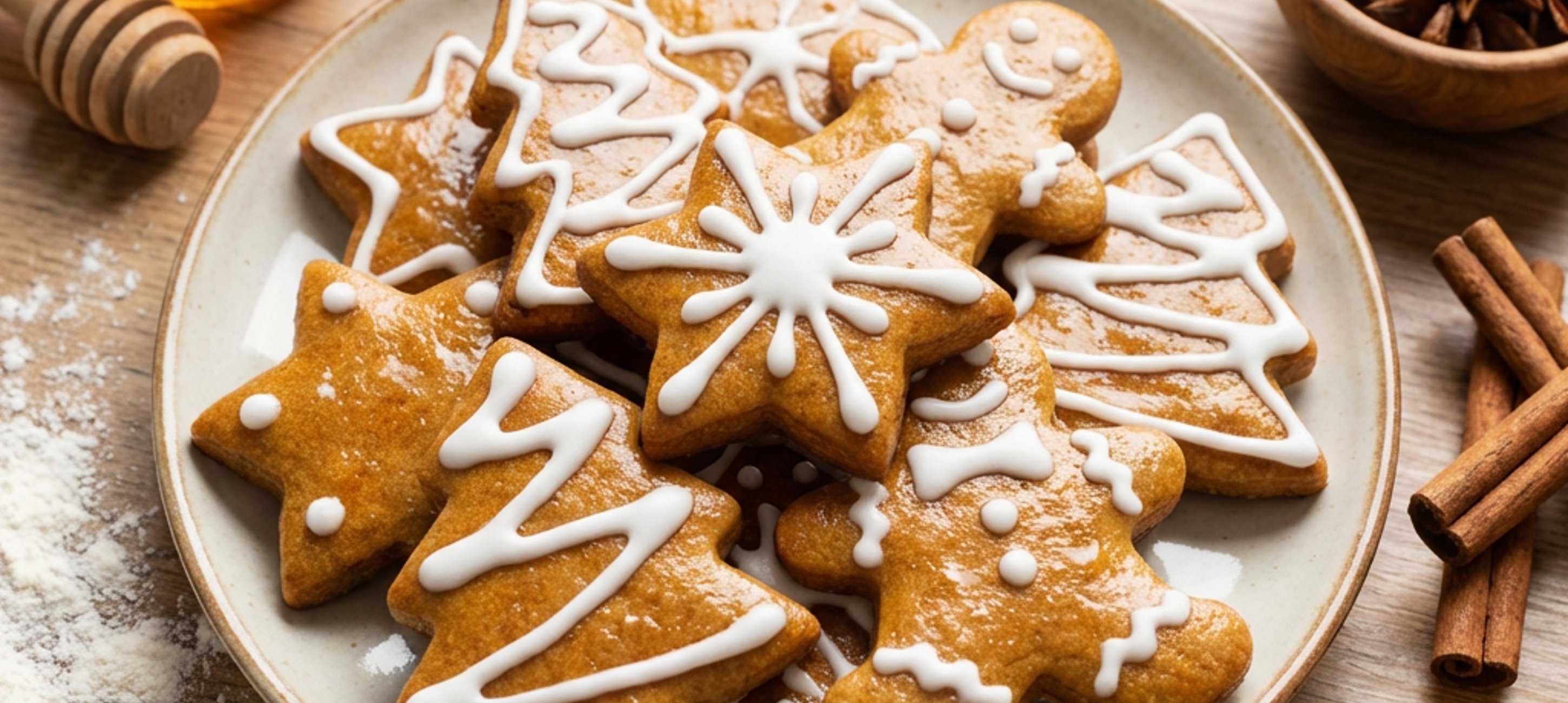 - 5Für die Glasur den Staubzucker fein sieben. Eiklar, 1 Esslöffel Wasser und Zitronensaft in einer Schüssel verrühren und den gesiebten Zucker nach und nach unterrühren. So lange rühren, bis eine glatte, spritzfähige Masse entsteht. Die Glasur sofort in einen Spritzbeutel füllen und die Lebkuchen damit verzieren.