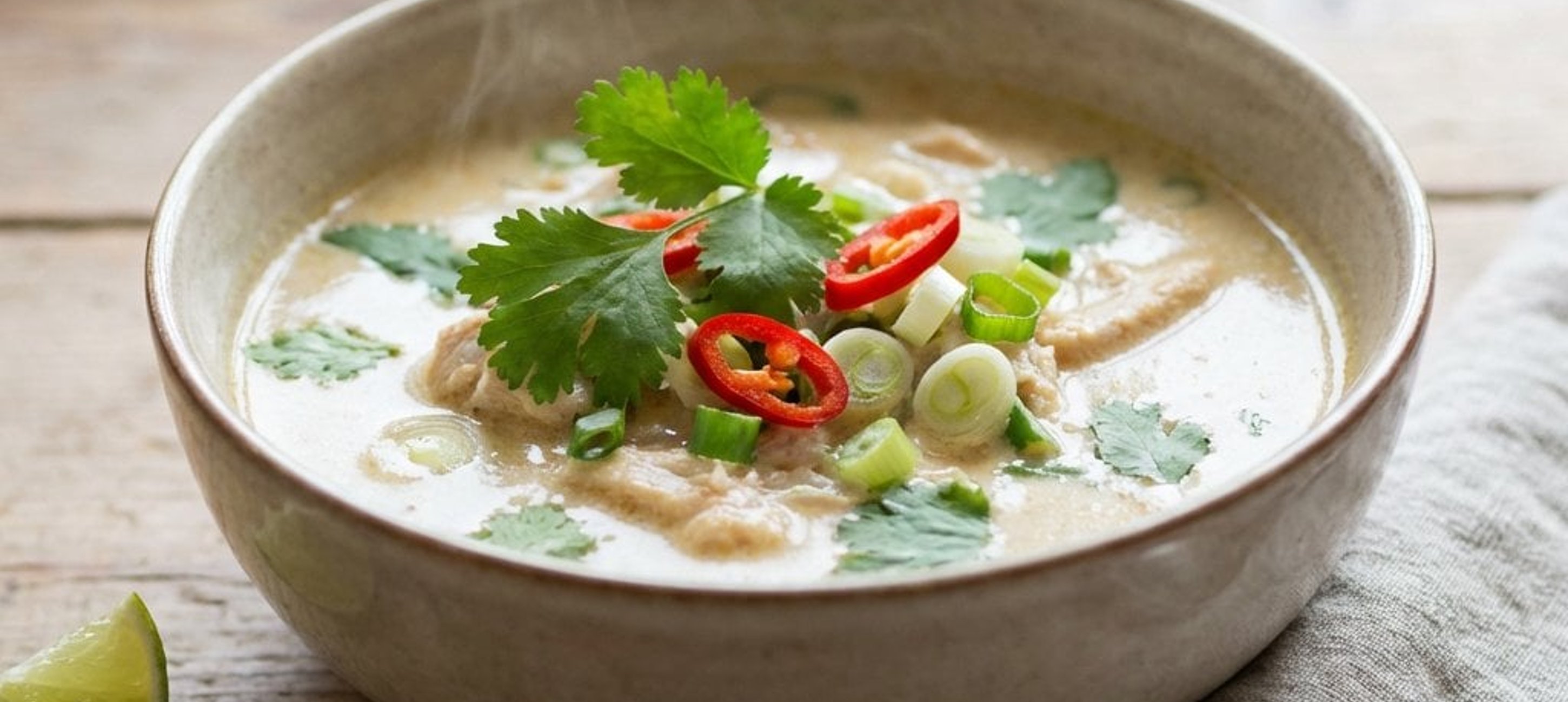 Ein kleiner Spritzer Fischsauce am Ende hebt die Umami-Noten der Kokosmilch perfekt hervor. Wer es schärfer mag, lässt die Kerne der Chilischote einfach drin!