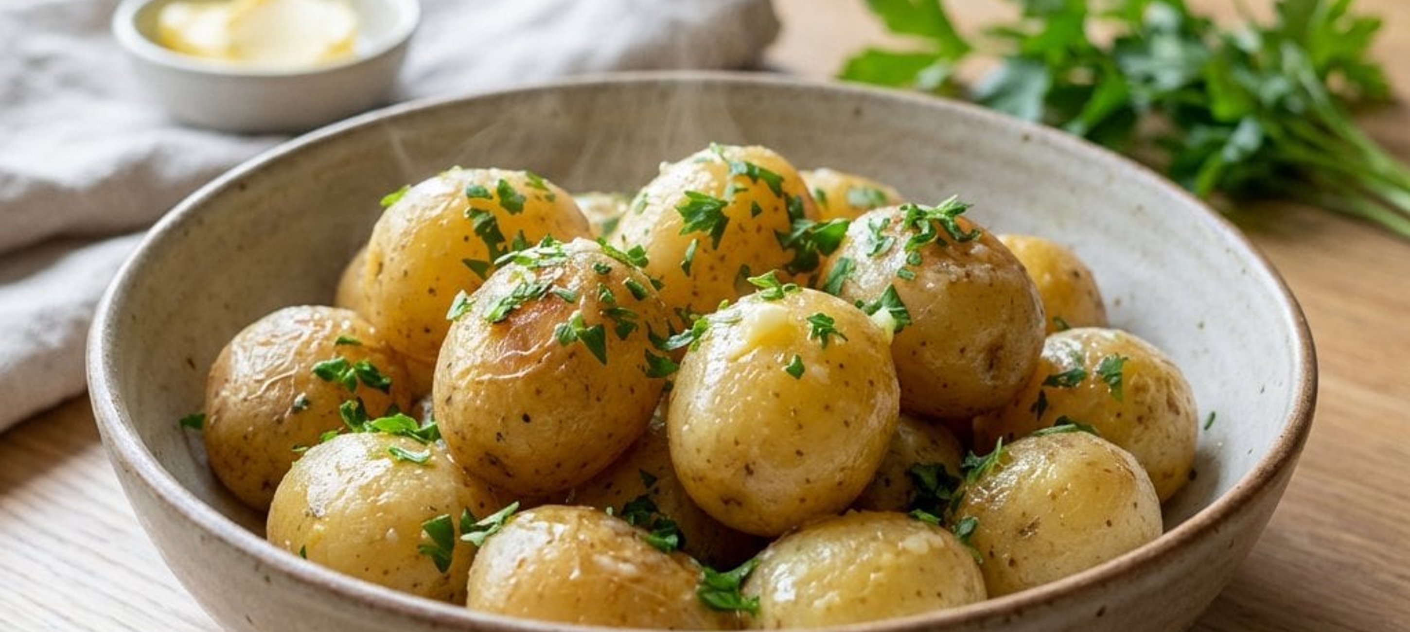 - 3Die heiße Butter über die Erdäpfel gießen, die frisch gehackte Petersilie hinzufügen, nach Belieben nachsalzen und alles vorsichtig durchschwenken, bis die Erdäpfel gleichmäßig überzogen sind.