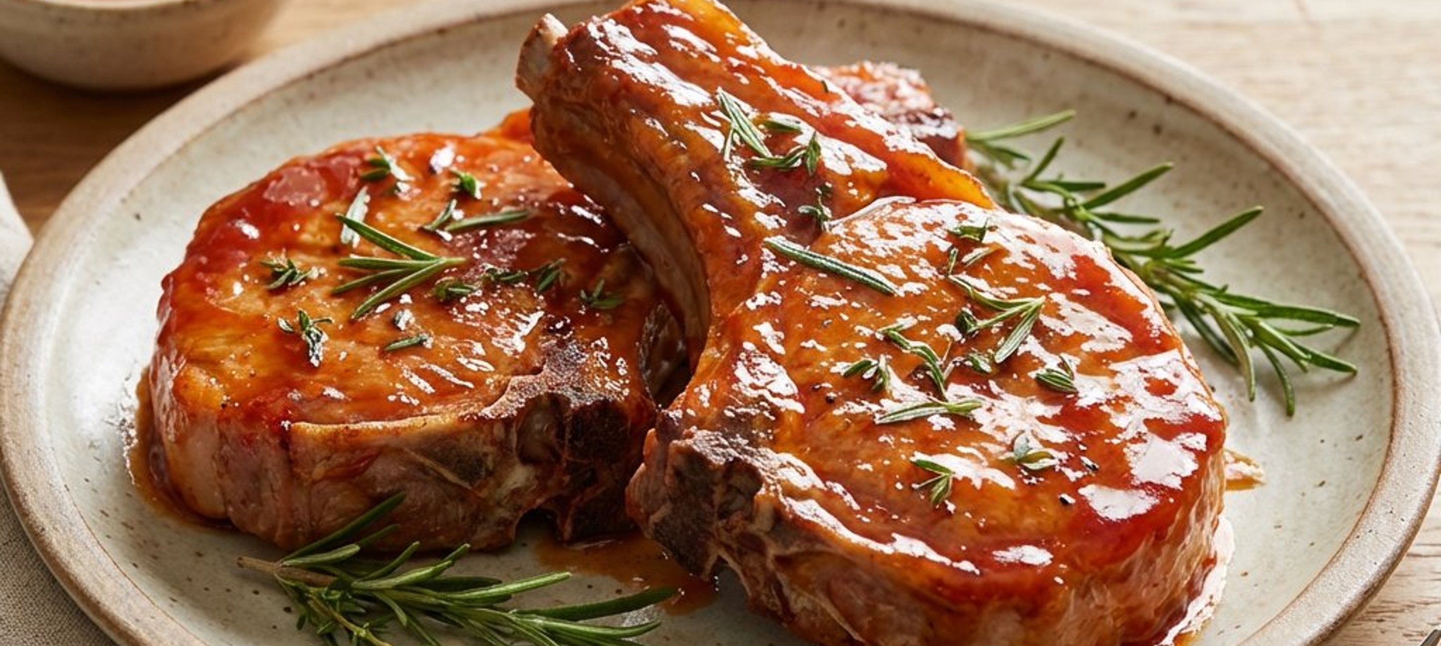 Tipp: Die Koteletts schmecken besonders gut, wenn man sie während der letzten 15 Minuten der Backzeit gelegentlich mit der Marinade aus der Form bepinselt. So entsteht eine besonders glänzende und aromatische Kruste.