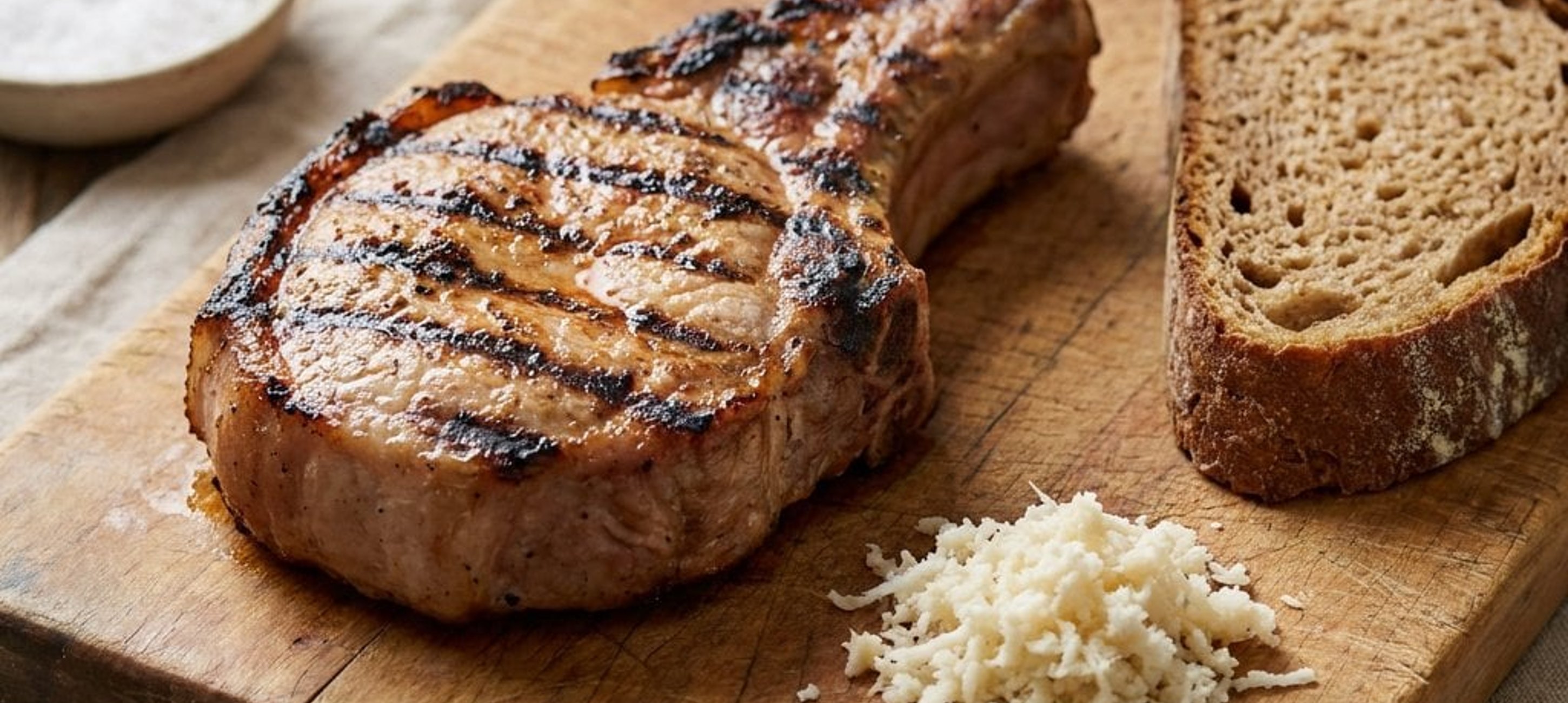 - 2Servieren Sie das heiße Kotelett mit einer Scheibe frischem Bauernbrot und reichlich frisch geriebenem Kren. Guten Appetit!