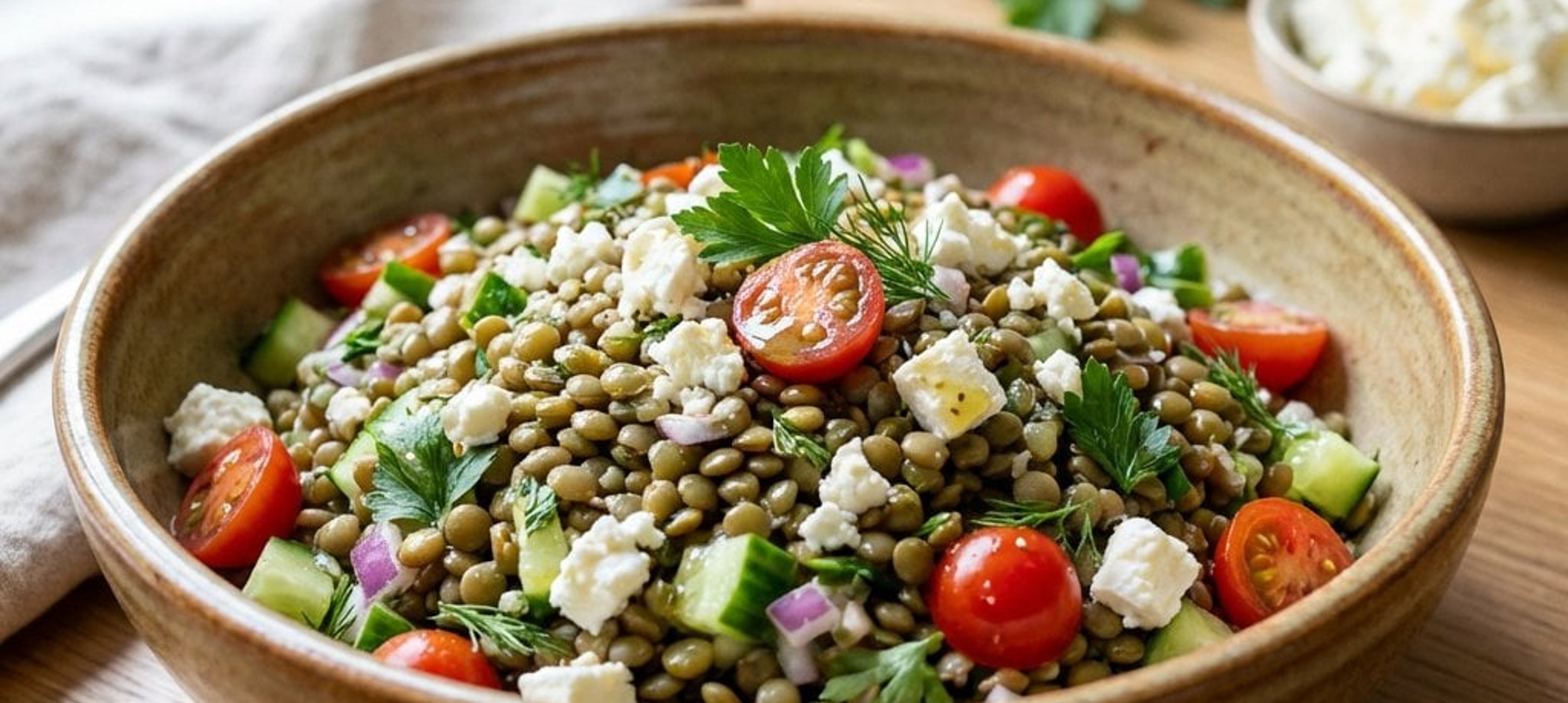 Ein kleiner Tipp: Verwenden Sie für diesen Salat am besten festkochende grüne Linsen wie Beluga- oder Berglinsen, damit sie nach dem Kochen ihre Form behalten und einen schönen Biss haben. Ein Schuss hochwertiges Olivenöl kurz vor dem Servieren rundet das