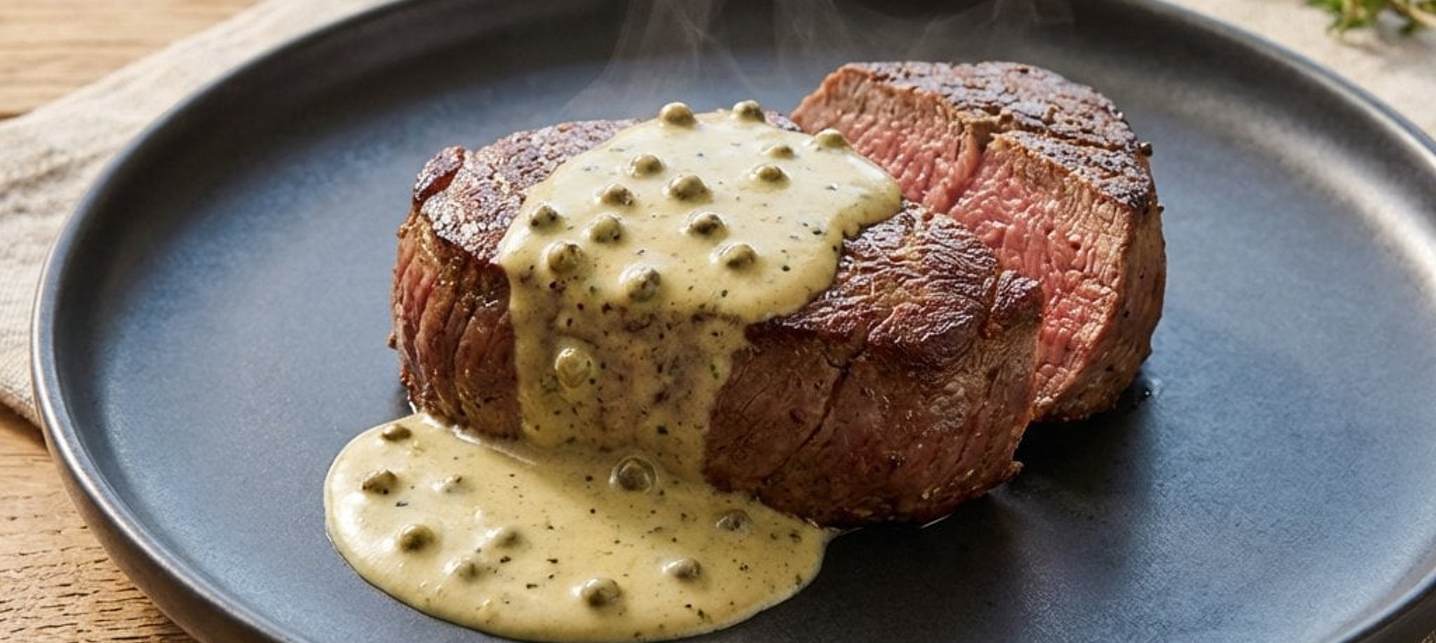 - 2Die Pfeffersauce kurz erwärmen. Die Steaks auf vorgewärmten Tellern anrichten, mit etwas Sauce übergießen und den Rest der Sauce separat in einer Sauciere servieren.
