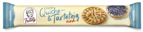 A round sensation, with buttery enjoyment: The fresh quiche and tart dough from Tante Fanny with 100% butter.You will succeed in savoury quiches and sweet tartes in no time at all. Simply roll out, top, bake and enjoy. An unforgettable taste experience with a fine hint of butter! Aunt Fanny - Fannytastically simple!