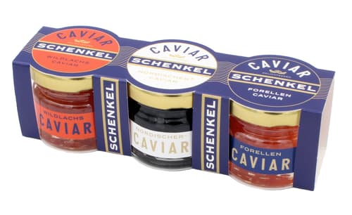 With the Schenkel Caviar Trilogy, you bring an exquisite selection of the finest caviar variations directly to your home. This attractive set combines three 25g jars of Wild Salmon Caviar, Trout Caviar, and Nordic Caviar (caviar substitute from lumpfish) and offers you an incomparable taste experience. Whether as a special highlight for your guests or as a luxurious gift – the Caviar Trilogy from Schenkel impresses all along the line.