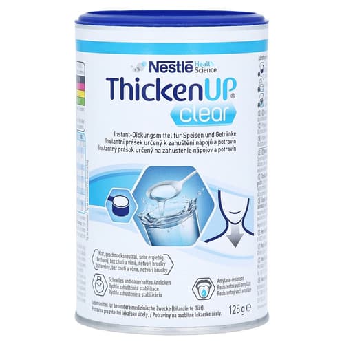 ThickenUp is a food for special medical purposes (balanced diet). The instant thickener is suitable for thickening food and drinks. Thickened food makes swallowing easier and the bound fluid can be absorbed by the body. This contributes to the fluid supply. ThickenUp does not clump, does not thicken and allows consistency adaptation without changing the taste. The gluten-free powder can be used both cold and warm. Also suitable for chewing and swallowing disorders (dysphagia), but not as the sole source of nutrition.
