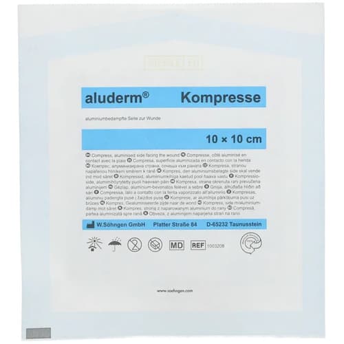 Aluderm with aluminum-vapor-coated wound dressing is ideally suited for all superficial wounds and injuries, superficial burns, abrasions, lacerations and cuts. Whether minor injuries or larger surface wounds - Aluderm always brings relief.