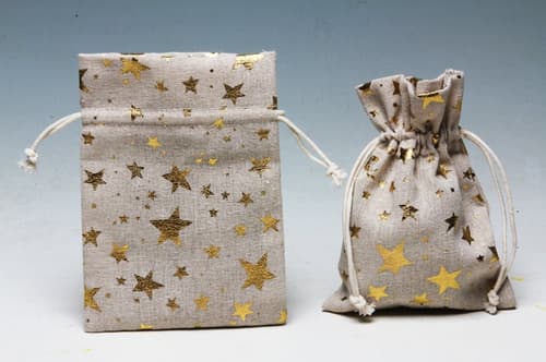 Jute bag with golden stars, beige, 13x18cm