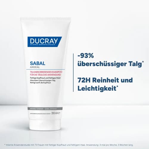 Say goodbye to quickly greasy hair! The Ducray SABAL Argeal Shampoo with Kaolin (white clay) specifically absorbs excess sebum, deeply cleanses the scalp, and delays re-greasing. For a fresh, light hair feeling.